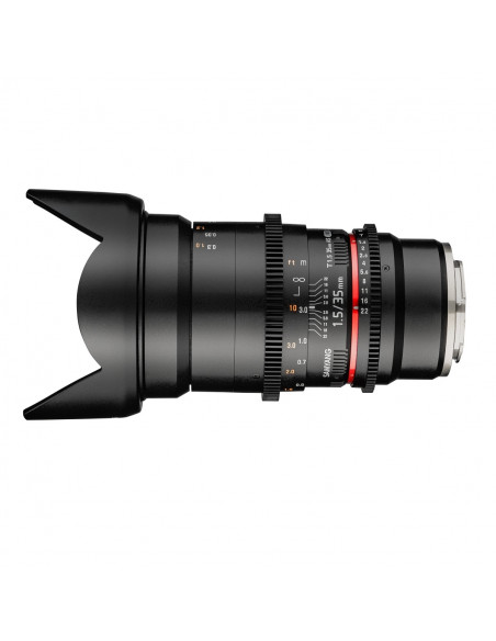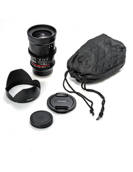 The Samyang 35/1.5 lens is the ideal focal length in the wide-angle range, allowing a wide variety of compositional possibilities in creative filming and photography. The lens is particularly suitable for reportage photography. It has a focal length of 35 mm. The excellent light intensity of 1:1.5 enables outstanding pictures even in less favourable lighting conditions.