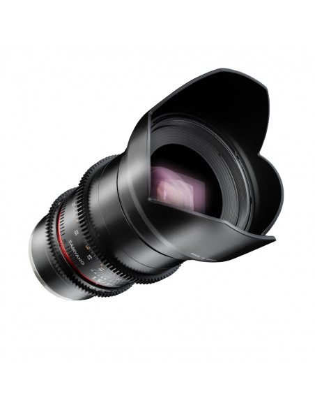 This wide-angle lens from Samyang is designed to meet the specific needs of videographers and photographers. The aperture is continuously adjustable from 1.5 to 22 and the focus adjustment is smooth and easy. This allows for smooth tracking of the focus when shooting video. The aperture ring and focus ring are equipped with a toothed ring and are thus optimised for use with follow focus systems. For better legibility, the distance and aperture scales are arranged on the side.
