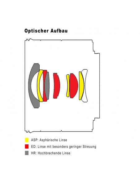 The interior of this lens consists of 9 glass elements arranged in 7 groups. Thus, a minimum focusing distance of only 90 cm is possible. The combination of the lenses with a hybrid aspherical glass (H-ASP) reduce chromatic aberrations and imaging defects and ensure high performance. This is reflected in sharp images with crisp contrasts and natural colors. The optical design is rounded off with Samyang's own UMC Ultra Multi Coating, which avoids reflections and ghost images.