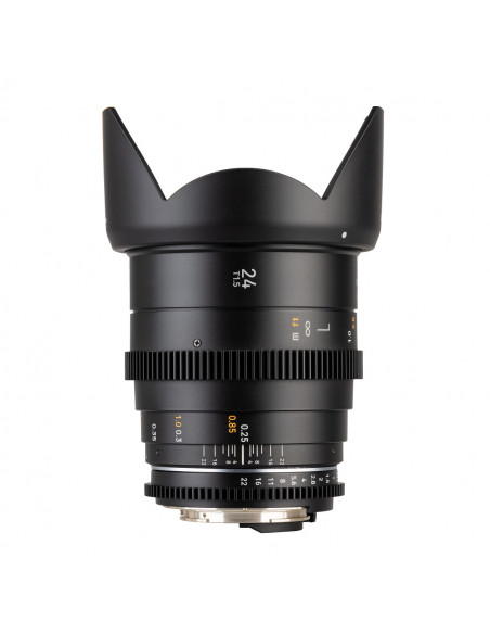 - SCOPE OF DELIVERY – 1x Samyang MF 24mm T1.5 VDSLR MK2 Nikon F, 1x Lens Hood (removable), 2x Protective Caps (front and back), 1x Storage Bag