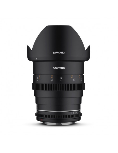 - SCOPE OF DELIVERY – 1x Samyang MF 24mm T1.5 VDSLR MK2 Sony E, 1x Lens Hood (removable), 2x Protective Caps (front and back), 1x Storage Bag