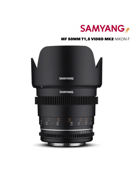 - NEW EDITION OF TRIED TECHNOLOGY – The robust Samyang MF 50mm T1.5 VDSLR MK2 Nikon F lens with 50 mm focal length for Nikon F mount is ready for any shoot, also on a drone, a gimbal or handheld.