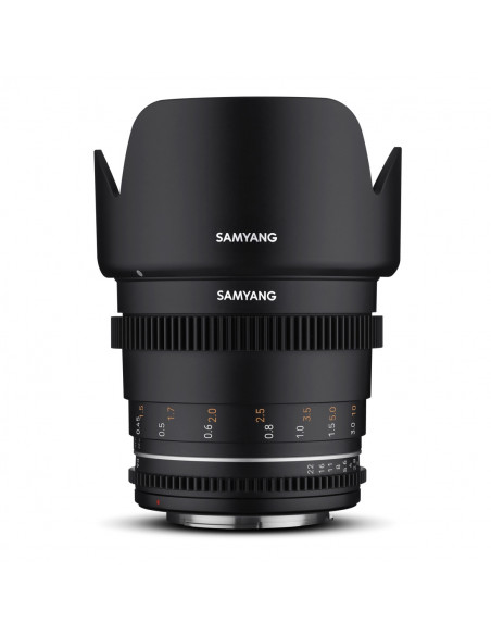- SCOPE OF DELIVERY – 1x Samyang MF 50mm T1.5 VDSLR MK2 Sony E, 1x Lens Hood (removable), 2x Protective Caps (front and back), 1x Storage Bag