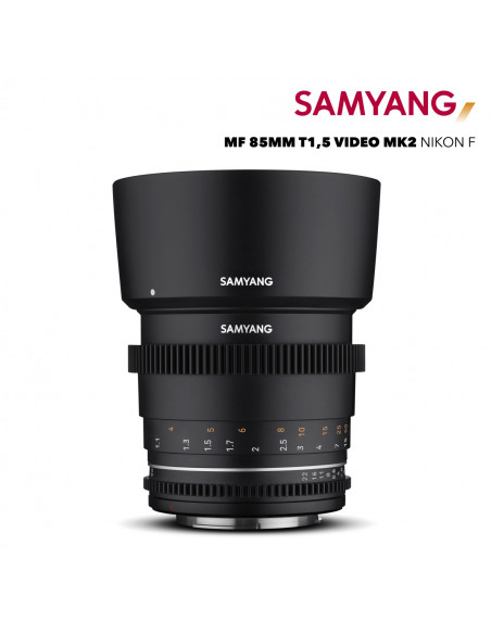 - NEW EDITION OF TRIED TECHNOLOGY – The robust Samyang MF 85mm T1.5 VDSLR MK2 Nikon F lens with 85 mm focal length for Nikon F mount is ready for any shoot, also on a drone, a gimbal or handheld.