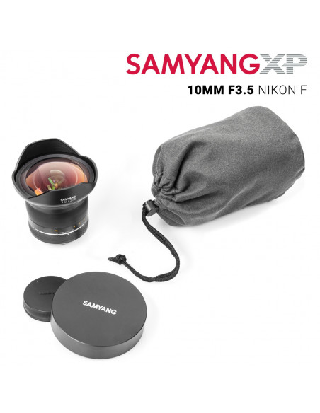 - 1x Samyang XP 10mm F3.5 ultra wide angle lens for Nikon F with lens hood