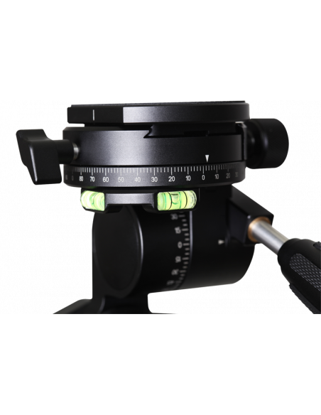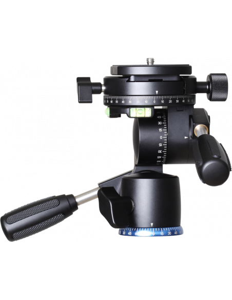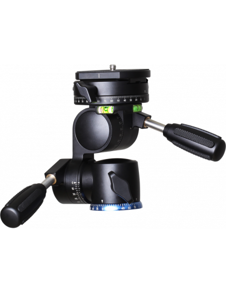 Det alsidige firevejshoved Sirui FD-01 tilbyder fire justerbare aksler for at kunne håndtere enhver tænkelig fotovinkel og har udtrækkelige håndtag til at sikre nemmere transport og opbevaring. Flere indbyggede vaterpas gør det hurtigt og nemt at få kameraet vinklet korrekt og i vater.Hovedet kan monteres på alle stativer med en standard 3/8" gevind og leveres med en Arca Swiss kompatibel quick-release-plade. Pladen har en gummioverflade, der sikrer et godt fæstne til kameraet, og har en dobbeltskrue med 1/4" og 3/8" gevind samt en D-ring til nem installation på dit kamera. Siruis eksklusive sikkerhedslås forhindrer, at kameraet glider af hovedet ved et uheld.EgenskaberFire akser (360°, -55° ~ 90°, -90° ~ + 90°, 360°)To akser kan indstilles fra -55° ~ + 90° eller -90° ~ + 90° og låsesTop- og basisplatform med 360° panoreringUdtrækkelig håndtag gør hovedet strømlinet og mindre pladskrævende