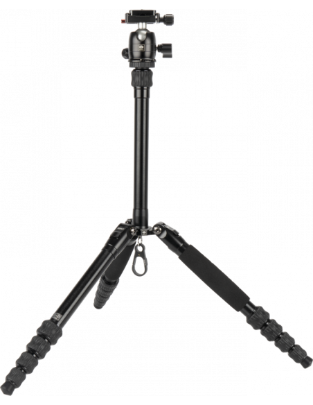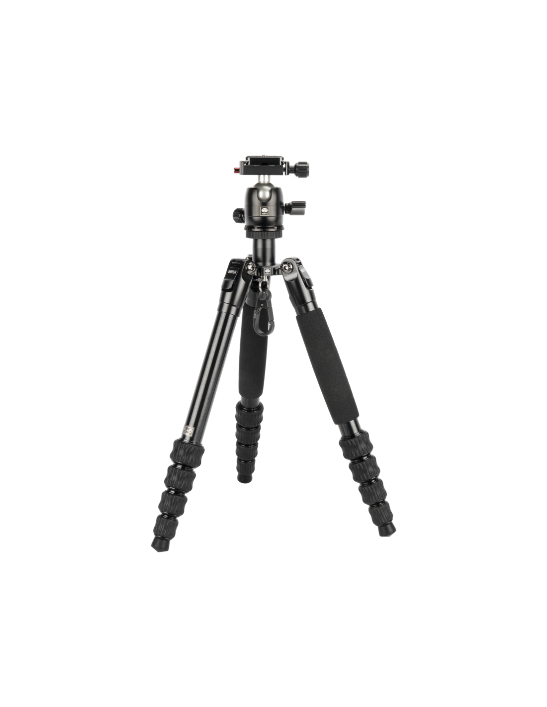 SIRUI Traveler 5AX**Rejs let uden at give afkald på styrke og stabilitetDet ultralette SIRUI Travel 5AX-stativ kombinerer lav vægt med meget høj kvalitet.På trods af sin kompakte konstruktion sikrer det sikker støtte til dit DSLR, spejlløse eller kompakte kamera.Med en vægt på 1 kg er det næsten ikke til at få øje på i bagagen og bliver en fremragende ledsager på alle dine rejser.Benene kan foldes 180° op, hvilket betyder, at stativet kan klappes sammen til en højde på kun 31 cm.Hvert ben er lavet af 5 sektioner med 4 forseglede drejelåse.Gummifødderne sikrer, at stativet står stabilt på alle overflader.Sirui Traveler 5AX-stativserien har en aftagelig midtersøjle.Kuglehovedet kan også monteres direkte på stativets skulder for maksimal stabilitet.En praktisk, medfølgende bæretaske og grebsvenlige, isolerede indpakninger på 2 ben til brug i koldt vejr er standard på Sirui-stativer.Det medfølgende B-00K kuglehoved arbejder meget præcist og smidigt.Basen kan rotere 360°, hvilket er ideelt til panoramabilleder.Kuglefriktionen kan justeres trinløst.Sikkerhedslåsesystemet forhindrer utilsigtet glidning af Quick Release Plate TY-C10.Kompatibilitet med Arca Swiss-systemet gør det muligt at bruge forskellige plader.B-00K har fuldmetalknapper for bedre brugervenlighed.Udløserpladen er gummieret og har tre åbninger, hvor 1/4"-skruen kan bruges.