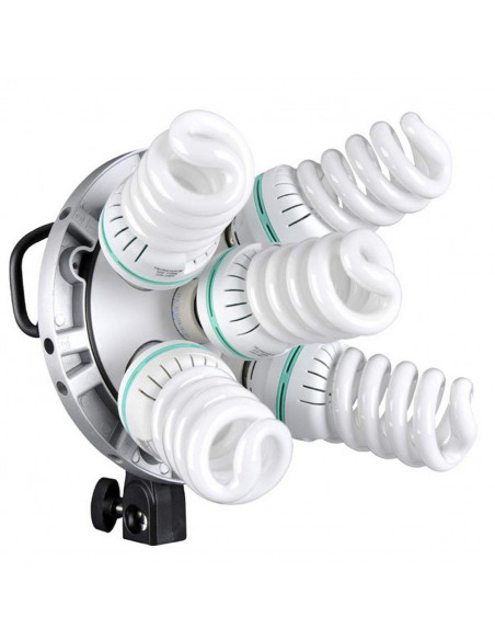 Det gode ved den er den har 5 pærer af hver 125watt (Vælg mellem 5500 kelvin eller 3200 kelvin og derudover har pærer CRI 90+ dvs det reneste lys, man kan få for lavenergi pærer ( kun LED lamper kan være lidt højere ) og dermed tætest muligt på solens lys og uden forvrængninger af farvebalancen.