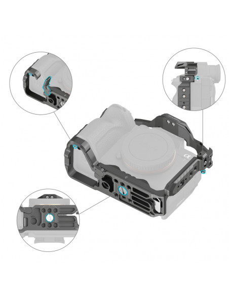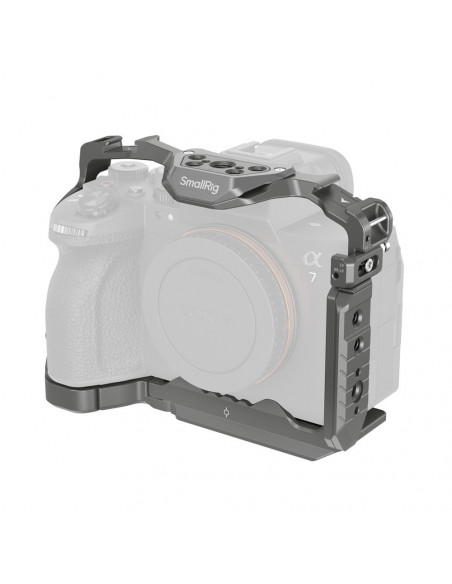 Camera protection redesigned The SmallRig 4481 HawkLock Quick Release Cage for Sony Alpha 7R V / Alpha 7 IV / Alpha 7S III / Alpha 1 / Alpha 7R IV is designed to attach accessories and protect the camera. Highlights Give your camera protection and additional attachment options Hawlock self developed quick release system Always access your interfaces and so on Self developed quick release system The patented self developed quick release system (called HawkLock) covers cold shoes, NATO rail and arca swiss, which is used with HawkLock eco accessories to achieve a solid and no false position, one push to load, loose to lock and improve disassembly efficiency. Customise your installation direction The camera is locked via a pin on the bottom, a 1/4" 20 screw and an M2.5 screw on the left side. The side locking adapters need to be adjusted in installation direction to fit different camera types, printed with âA7 IVâ is for Alpha 7 IV and Alpha 7R V, while printed with âA7S IIIâ is for Alpha 7S III / Alpha 1 / Alpha 7R IV. Built in protective spacers all around prevent scratching the camera. Always access The cage allows access to interfaces, dials, buttons or battery covers. There is a spindle key in the battery compartment that fits the curve of the camera and leaves room for a little finger for a comfortable grip. Extensive mounting options The 1/4â 20 threaded holes, ARRI 3/8â 16 mounting holes and HawkLock cold shoe mounts support top handle 2165C, side handle 2093, monitor mount 2903, microphones, LED lights, monitors, etc. The lower QD mount supports the QD shoulder strap. HawkLock Arca Swiss bottom quick release plate is compatible with DJI RS 2/RSC 2 / RS 3 / RS 3 Pro, DJI RS 2/RSC 2 stabiliser quick release plate (riser plate) for stabiliser shots and Arca Swiss quick release plate 3154. The holes on the sides and bottom of the cage allow attachment of accessories such as the PAC2456 hand strap. Moreover, the cage has a built in magnetic key that facilitates disassembly and assembly., Dimensions: 147.0 x 108.5 x 62.5 mm Weight: 181 g Material: aluminium alloy, silicone, stainless steel 2 year warranty , 1 x SmallRig 4481 HawkLock Quick Release Cage for Sony Alpha 7R V / Alpha 7 IV / Alpha 7S III / Alpha 1 / Alpha 7R IV