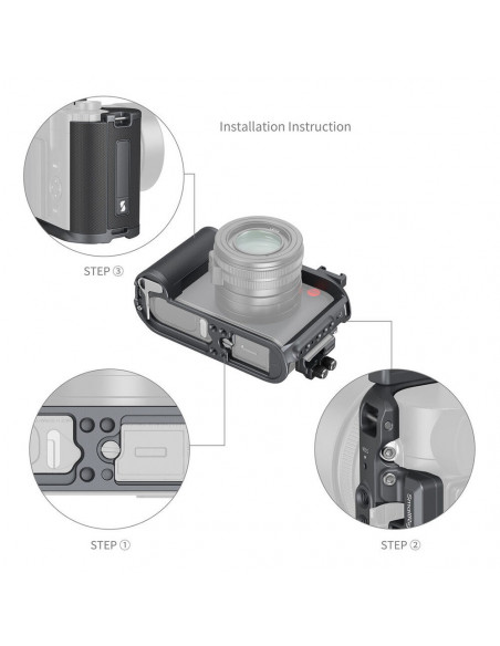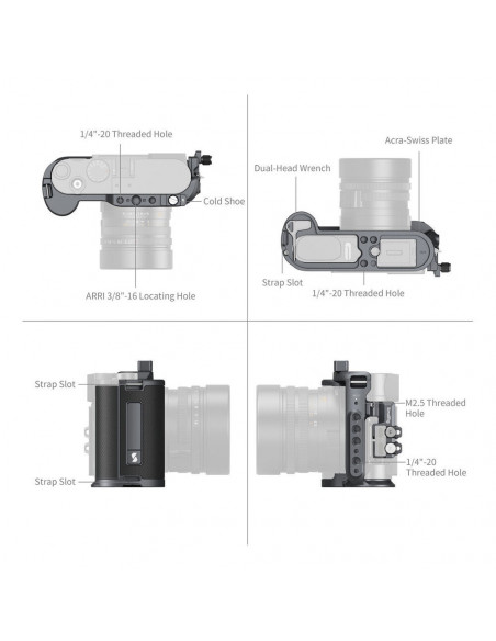Capture with distinctive grace The SmallRig 4567 Cage Kit for Leica Q3 is designed to protect your camera while providing a range of expansion interfaces to enhance content creation. This full body cage features a two point locking system that secures the camera with a 1/4" 20 screw on the bottom and an M2.5 screw on the left, while multiple built in silicone pads prevent scratching the camera. The cage includes personalised elements such as a custom engraved nameplate for a unique touch. Essential wearing parts, such as the double belt holes and screws, are made of robust titanium alloy. Highlights Give your cameracage a unique touch with a custom engraved nameplate Key bearing parts made of titanium alloys Versatile built in mounting interfaces Integrated Arca Swiss quick release plate at the base, Equipped with HDMI & USB C cable clips Ergonomic design The cage provides unobstructed access to all camera interfaces, buttons, slots, screen and battery compartment, while the ergonomic handle design ensures a comfortable grip. The cage features 1/4â 20 threaded holes, ARRI locating holes and 1/4â 20 locating holes, making it possible to attach accessories such as top handles (ID 2165C) or side handles (ID 4015, 4346) to stabilise camera movement during handheld shots. The cage also supports the attachment of magic arms (ID 3875), V mount plates (ID 2987), battery clamps (ID 2336) with batteries (3579) and monitor mounts (ID 2903B, 2904B). It is also equipped with built in belt holes for wrist straps (ID 3848) or shoulder straps (ID PSC2428). Arca Swiss quick release plate The bottom features an Arca Swiss quick release plate for direct mounting on Arca tripods. The built in double headed magnetic flat key facilitates mounting and dismounting of accessories. The removable cold shoe can be mounted on the top or left side of the cage with a 1/4" 20 location screw, allowing accessories such as microphones (ID 3487), LED lights (ID 4055) and more to be attached. In addition, the kit includes an HDMI & USB C cable clamp for stable data transfer., Dimensions: 147.5 x 88.0 x 55.9 mm / 5.8 x 3.5 x 2.2in Weight: 193.0 ± 5.0g / 6.8 ± 0.2oz Material: aluminium alloy, silicone, titanium alloy 2 year warranty , 1 x Cage 1 x Silicone support 1 x Cold Shoe attachment 2 x 1/4" 20 screw 1 x HDMI & USB C cable clamp 1 x User guide