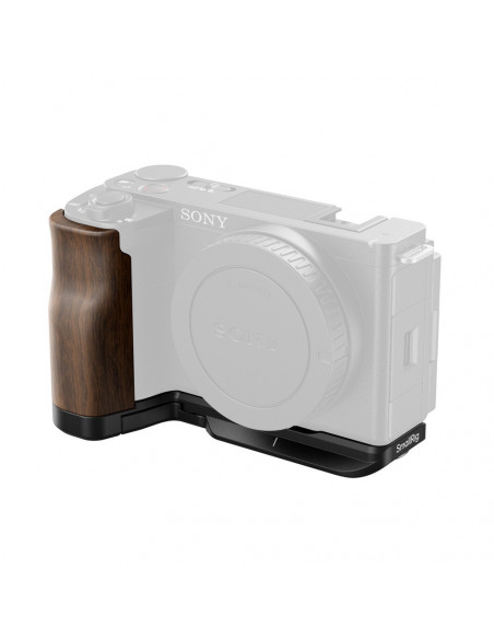 Where style meets functionality SmallRig L shaped mounting plate with wooden handle for Sony ZV E10 II 4864 is designed to improve grip for users. The L shaped mounting plate is secured at the bottom with a 1/4" 20 screw. The handle is made of natural solid wood, elegant with a rich, natural feel and ergonomically designed to improve grip feel. Highlights An ergonomically designed silicone handle improves grip. Wooden handle, elegant with a rich, natural feel. L shaped mounting plate features a 1/4" 20 threaded hole, belt hole and QD interface at the bottom An integrated Arca Swiss quick release plate at the bottom Lightweight and compact design Ergonomically designed The hinge on the battery compartment outlines the curves of the camera and improves grip by addressing pinky placement issues. The mounting plate has a 1/4" 20 thread on the bottom, making it compatible with mini tripods and DJI RS Mini quick release plates for camera stabilization setups. Integrated Arca Swiss quick release plate It also has an integrated Arca Swiss quick release plate, compatible with Arca type tripods and DJI RS 2 / RSC 2 / RS 3 / RS 3 Pro / RS 4 / RS 4 Pro stabilizers, allowing smooth transitions between handheld, stabilizer and tripod shooting scenarios. QD interface The bottom features a QD interface for QD shoulder straps, while a belt hole is compatible with wrist straps (ID 3848). For even greater ease of use, the kit features a built in magnetic hex key on the bottom for quick access and easy assembly and disassembly., Dimensions: 115.1 x 63.7 x 76.4 mm Weight: 72 g Material: aluminum alloy, wood, stainless steel 2 years warranty , 1 x SmallRig 4864 L shaped mounting plate with wooden handle for Sony ZV E10 II 1 x Allen key