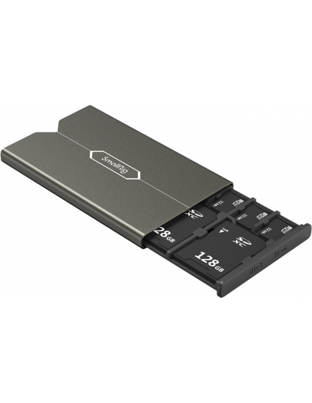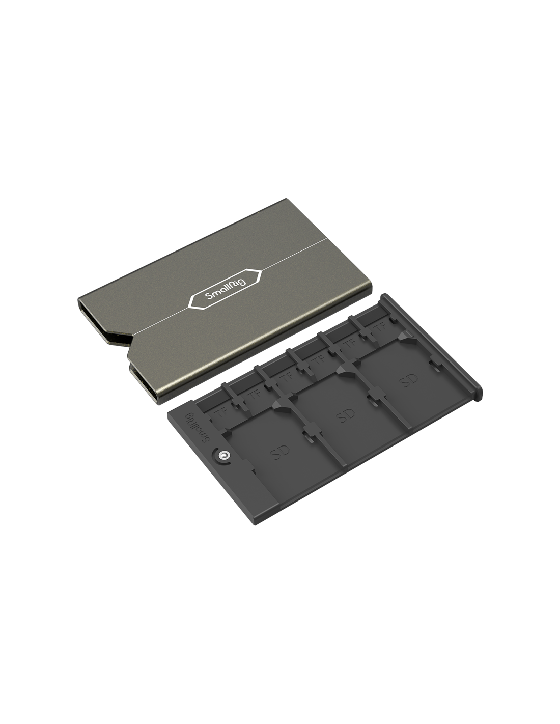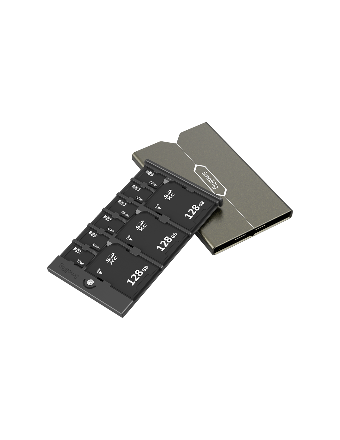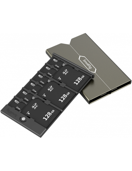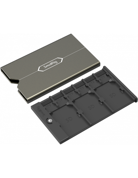 SmallRig 2832 Hukommelseskortetui til SD og Micro SDHvert hukommelseskort har et selvstændigt sikkert rum, som hurtigt og sikkert kan skubbes ind i kortåbningen til opbevaring.Kortåbninger med påtrykte navne på kompatible kort giver hurtig identifikation. Kortåbninger med påtrykte navne på kompatible kort giver hurtig identifikation.Den er kompakt og nem at opbevare. Den ydre skal er lavet af en robust aluminiumslegering, og den indre kasse er lavet af ABS+PC-materiale. Den har en udtrækkelig struktur.Den bruger en udtræksstruktur for at lette hurtig adgang til interne genstandekompatibilitet:SD-kort, Micro SD-kortIndeholder i pakken:1 x holder til hukommelseskort