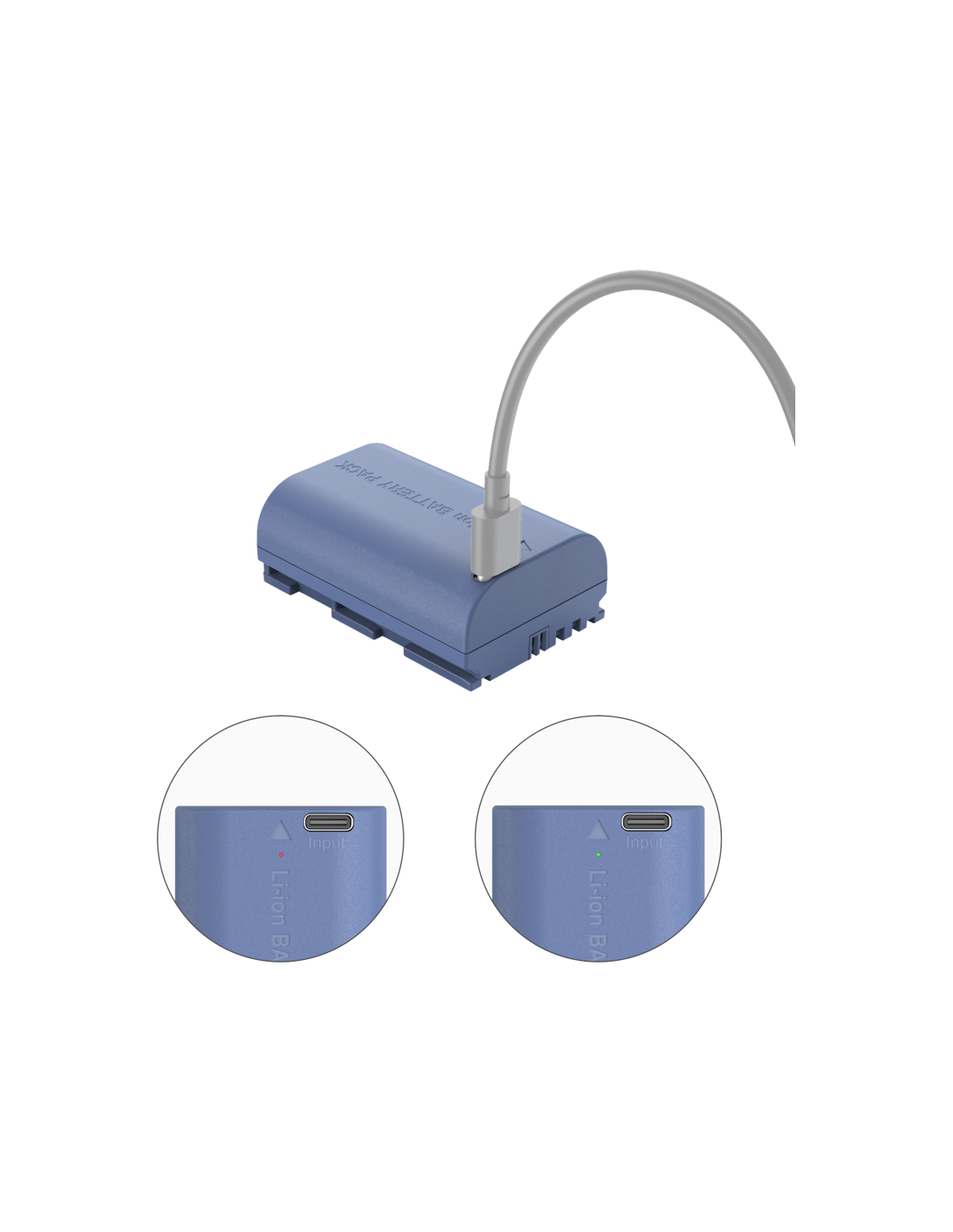 SmallRig 4264 USB-C genopladeligt kamerabatteri LP-E6NH.Med sin fuldt afkodede chip forsyner SmallRig LP-E6NH-batteriet problemfrit forskellige Canon-kameraer med strøm, så der ikke opstår pop op-vinduer i kameraet eller kompatibilitetsproblemer.Dette visuelt særprægede batteri har matteret ABS- og PC-skal, som er brandsikker og holdbar.Det har præcis samme størrelse som det originale kamerabatteri, så du skal ikke bekymre dig om, at det sætter sig fast.Kvalitetsbattericellen har et sikkert og pålideligt kredsløb, der giver stabil spænding og strømudgang.Beskyttelse mod kortslutningBeskyttelse mod høj temperaturBeskyttelse mod høj strømBeskyttelse mod høj spændingBeskyttelse mod overopladningBeskyttelse mod overafladningDette batteri har en høj kapacitet på 2400 mAh.Det opfylder behovet for lang tids optagelse/skydning:(Baseret på CIPA-standardtest)Optagetid - 3 timerAntal billeder - 780Testkamera-model - Canon EOS R7Bemærk!Understøtter også opladning med dedikeret opladerKompatibilitet:F.eks: Canon EOS 5D / 5D Mark II / 5D Mark III / 5D Mark IV / 6D / 6D Mark II / 7D / 7D Mark II / 60D / 70D / 80D / 90D / XC10 / XC15 / 5DS / 5DS R / R / R5 / R6 / R5C / R7 / R6 Mark II*Der er for mange kompatible modeller til at blive listet. Se venligst deres batteritype.Certificeringer:Dette produktsystem har bestået den genopladelige battericertificering for sikkerhed og effektivitet:FCC / UL / UKCA / CE / RoHS / ISEDPakken indeholder:1x LP-E6NH USB-C genopladeligt kamerabatteri1x Batteridæksel1x 0,6 m USB-A til USB-C opladningskabel1x Brugervejledning