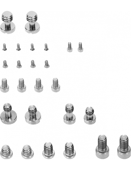 SmallRig 2326 Skruesæt til kameratilbehørKassen indeholder seks typer skruer, 26 skruer i alt:2 x 1/4" skrue med kærv,8 x 1/4" cylinderskrue,2 x 3/8" skrue med kærv,4 x M2 phillips-skrue,2 x M2,5 cylinderskrue,4 x M3 phillips-skrue,4 x M4 cylinderskrueog en kasse til opbevaring.For eksempel kan m2,5-skruen bruges til udvalgte kamerabure, som låses med m2,5-skruen på siden.Skruerne m3 og m4 kan bruges til ARRI-rosetten.