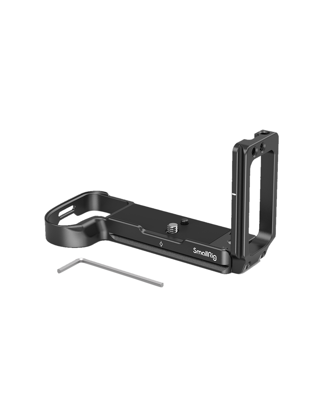SmallRig 2947 L-Bracket til Nikon Z5/Z6/Z7 & Z6II/Z7IIBåde bundpladen og sidepladen er Arca-kompatible svalehaler, der gør det muligt at montere kameraet i lodret eller vandret position.Det fastgøres til bunden af kameraet med en 1/4"-skrue og en anti-twist-lokaliseringsstift for at forhindre vridning.Hver akse har en sensorcentreringslinje til at justere kameraet på et stativhoved. Hver akse har en sensorcentreringslinje til at justere kameraet på et stativhoved.Sidepladen kan forlænges til venstre, hvis der er brug for mere plads til fastgørelse eller kabeludløser.Desuden har L-beslaget flere 1/4"-20-gevindhuller på siden og i bunden til fastgørelse af tilbehør som SmallRig Cold Shoe 2736 og Cable Clamp 2259. Dertil kommer en skruetrækker.Der medfølger en flad skruetrækker til fastgørelse af kameraskruen, som opbevares i bunden af L-beslaget.Pakken indeholder:1 x L-plade1 x unbrakonøgle