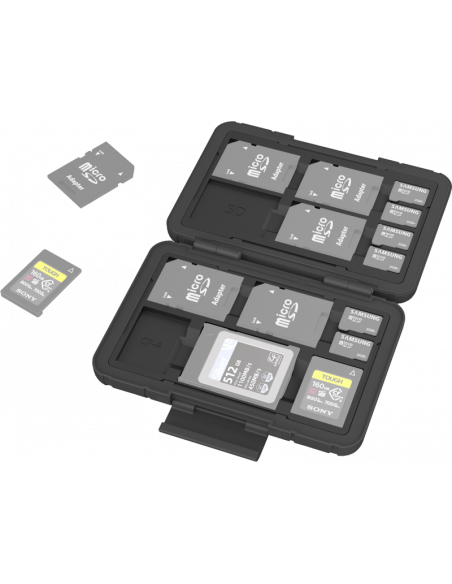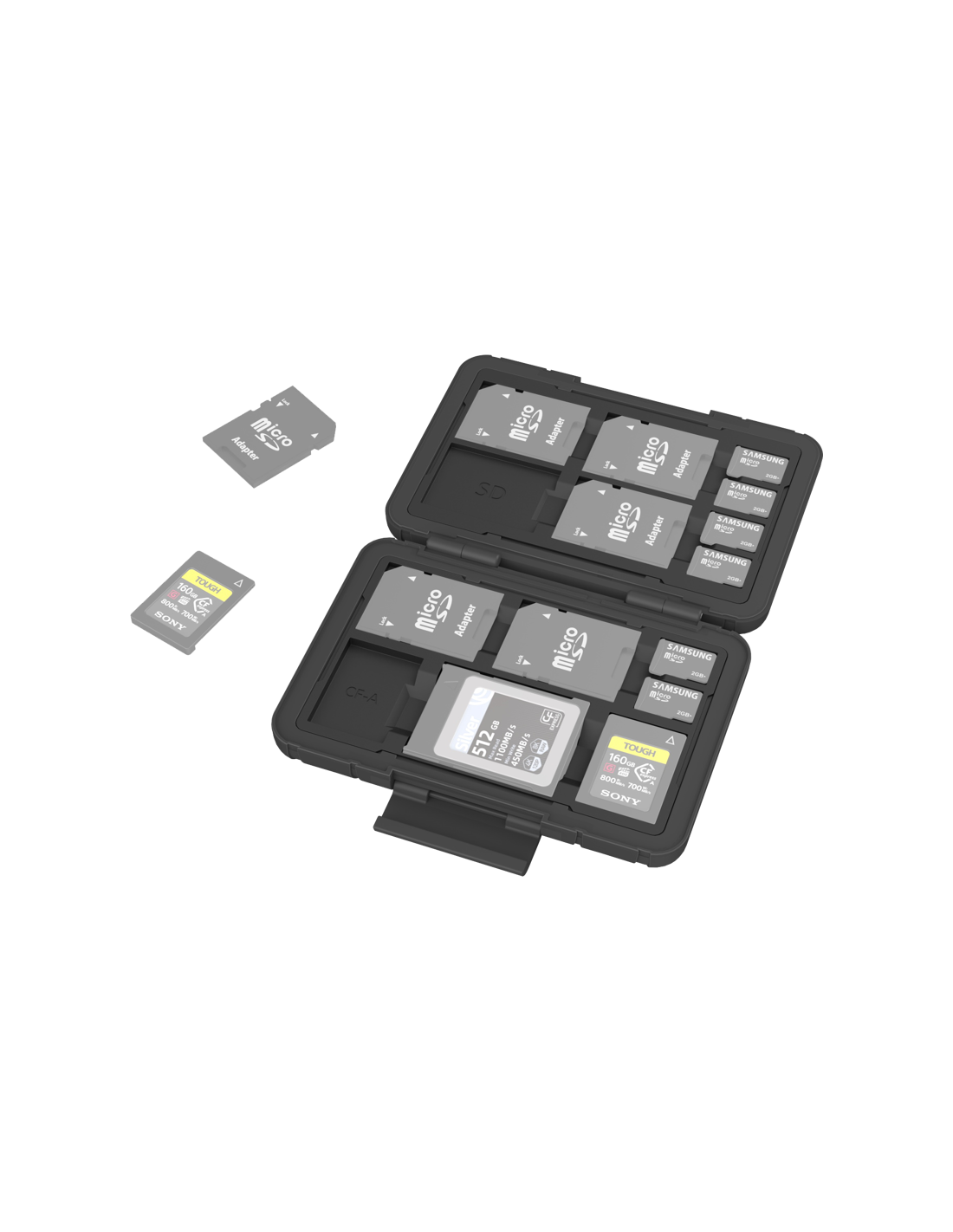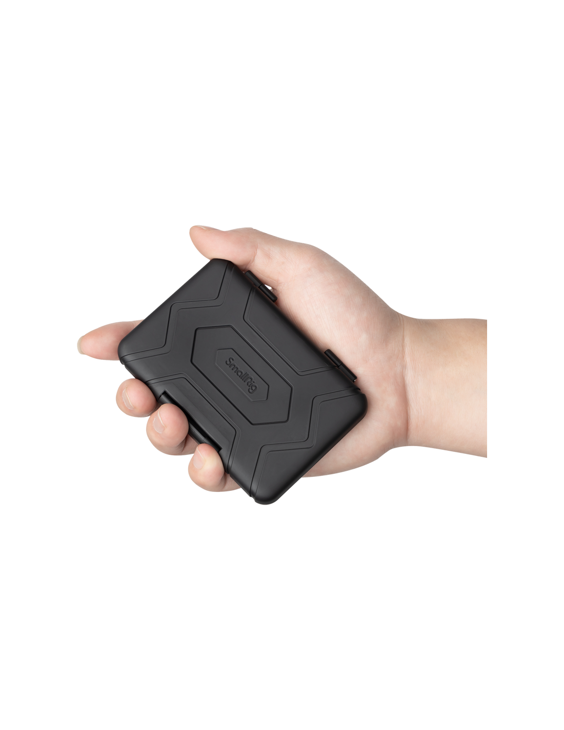 SmallRig 3192 hukommelsesetuiEtuiet leveres med en letbetjent on/off-lukning, forseglelige silikoneforinger, der forhindrer stænk og støv, kortholdere med trykt navn på kompatible kort til identifikation og antichok-kortbakker, der indpakker og fastgør kort.Efter at have bestået en faldtest på 2 m kan denne vare effektivt beskytte dine hukommelseskort mod utilsigtede fald.Kompatibilitet:Micro SD-kortSD-kortCFexpress Type A-kortCFexpress Type B/XQD-kortI æsken:1 x Etui til hukommelseskort