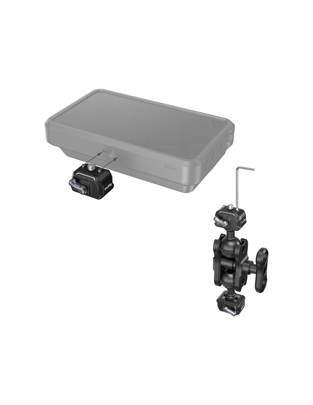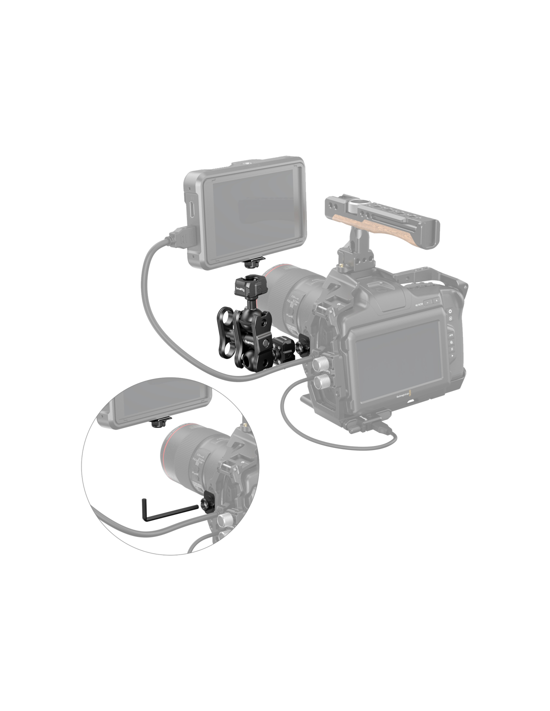 SmallRig 3515 Drop-in HawkLock Mini Magic Arm med quick release-kuglehovedDets quick release-kuglehoved er kompatibelt med enheder med 1/4"-20-gevind, såsom kameraer, skærme, bure, monteringsplader osv. og quick release-pladen kan spændes lodret og stabilt ind i bundpladen, hvilket ikke forårsager nogen afbøjning.Den magiske arm er let at låse og låse op.Kuglehovedet muliggør sammen med en klemme universel justering af den magiske arm.Det er aftageligt og kan udskiftes.Det er kompatibelt med tilbehør til SmallRig 2132, 2133, 2134, 2114, 2108, 2383, 2211, du kan vælge at få ovenstående tilbehør efter dine behov.Denne magiske arm, som kan holde op til 5 kg, låser enhederne sikkert fast under optagelsen.Kompatibilitet:UniversalIndeholder i pakken:1 x Magic Arm med kuglehoved med hurtig frigørelse1x unbrakonøgle