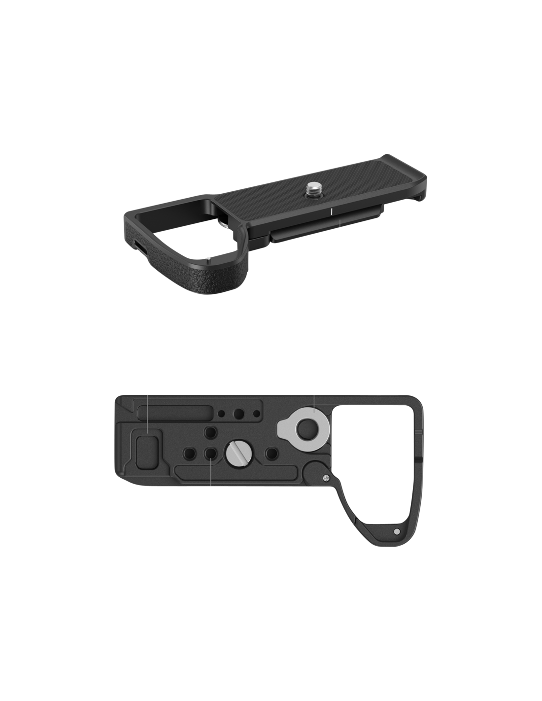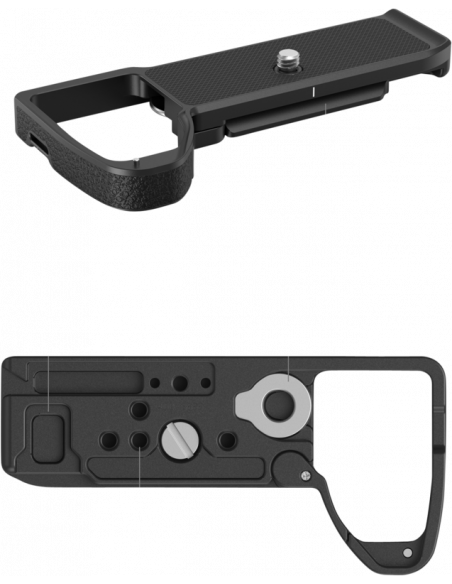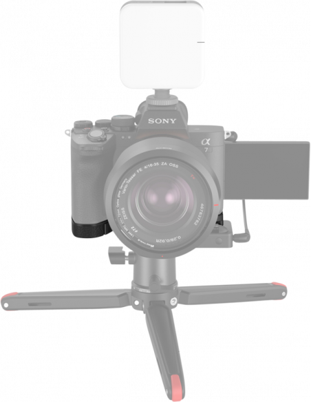 SmallRig 3666 Baseplate til Sony A7 IVDen fastgøres til bunden af kameraet via en 1/4" -20-skrue og en lokaliseringsstift med indbygget silikonepude for at forhindre ridser og vridning.Der er en spindelnøgle ved batteridøren, som passer til kameraets kurve og giver plads til en lillefinger for et behageligt greb. Indlejret udvalgt ægte læder i bundpladen integreres i kamerahuset.1/4"-20-gevindhuller og kolde sko i bunden understøtter mini-stativer og mikrofoner.Desuden giver den Arca-kompatible bundplade mulighed for hurtigt at skifte mellem stativ, stabilisator (DJI RS 2/RSC 2) og håndholdt optagelse.Tilgængelig indbygget magnetnøgle letter adskillelse og samling.Kompatibilitet:Sony Alpha7 IVPakken indeholder:1 x bundplade