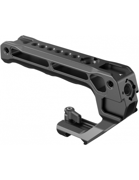 SmallRig 3766 Nato Top HandleDet ergonomiske håndtag med skridsikker og frostsikker silikone føles behageligt og vejer kun 124 g på grund af en udhulet struktur.Den har 3 kolde sko foran og 2 kolde sko bagpå, der gør det muligt samtidig at montere mikrofon, LED-lys, skærm og andet tilbehør.ARRI 3/8"-16-placeringshuller understøtter SmallRig Monitor Mount 2903 og 2348 til fastgørelse af skærme.1/4"-20 gevindhuller understøtter SmallRig Magic Arm 2070 til skærme og fjernbetjening 2924 til optagelse.Den hurtigudløsende NATO-klemme passer til alle standard NATO-skinner.Kompatibilitet:Alt tilbehør har NATO-skinneI æsken:1 x øverste håndtag
