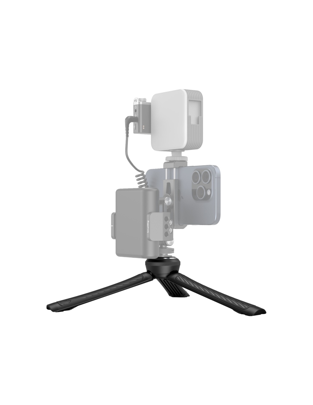 SmallRig 4117 Mini Quick-Release-stativ.Monter mini-stativet i bunden af stabilisatoren, og skub toppen op for at sætte støttefødderne på plads.Hurtigt og nemt at bruge.1/4"-20-skruen på toppen af stativet kan monteres på bunden af kameraet, buret, stabilisatorer osv., mens silikonepuden beskytter udstyret mod ridser.Kompatibilitet:Kompatibel med alle enheder med et 1/4"-20-gevindhul i bundenPakken indeholder:1x Mini Quick-Release-stativ