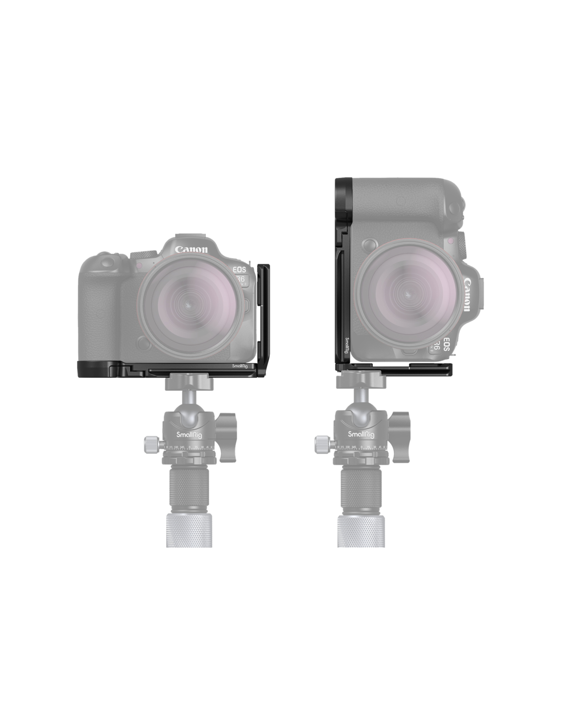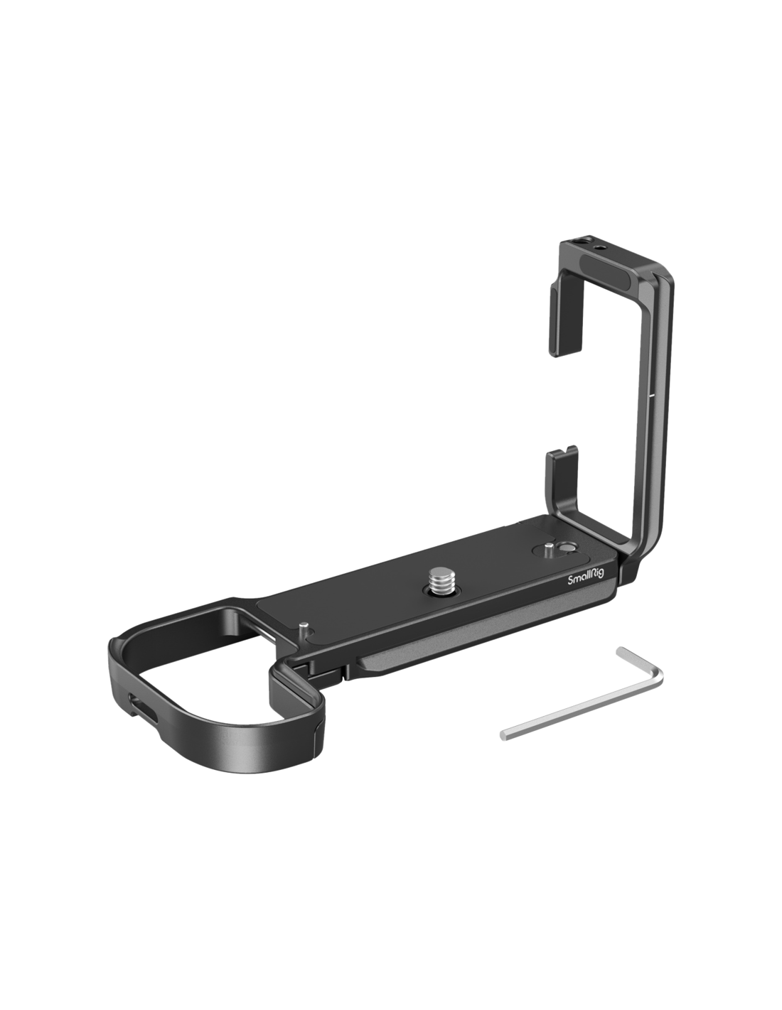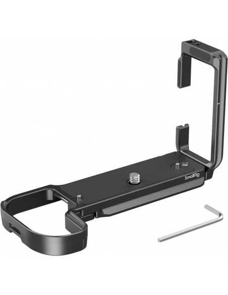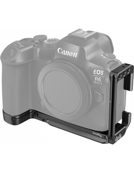 SmallRig 4160 L-Shape Mount til Canon EOS R5/ R5C/ R6/ R6 MKIIDet låses på kameraet via en 1/4"-20-skrue i bunden og to lokaliseringsstifter.Det har gummipuder, der forhindrer ridser, og har en hængselarm ved batteridøren, der passer til kameraets kurve for at forbedre grebet.Der er flere tilbehørsmonteringer:En Arca-Swiss quick-release-plade til stativer af Arca-typen eller DJI RS 2 / RSC 2 / RS 3 / RS 3 Pro-stabilisatorer1/4"-20 gevindhuller i bunden, der understøtter SmallRig Side Handle 2093 & 3847 til lodret håndholdt optagelse og SmallRig Quick Release Plate 1280Strap holes for SmallRig Hand Strap 3848 & 2456.Pladen har også et QD-stik til at fastgøre Quick Disconnect System til en skulderrem, 1/4"-20 gevindhuller, der passer til SmallRig Cold Shoe Mount 2736 til en mikrofon.Desuden medfølger en magnetnøgle til nem afmontering og montering.Kompatibilitet:Canon EOS R6 Mark II / EOS R5 / EOS R5 C / EOS R6Pakken indeholder: 1 stk.1 x L-beslag1 x unbrakonøgle