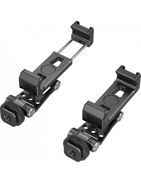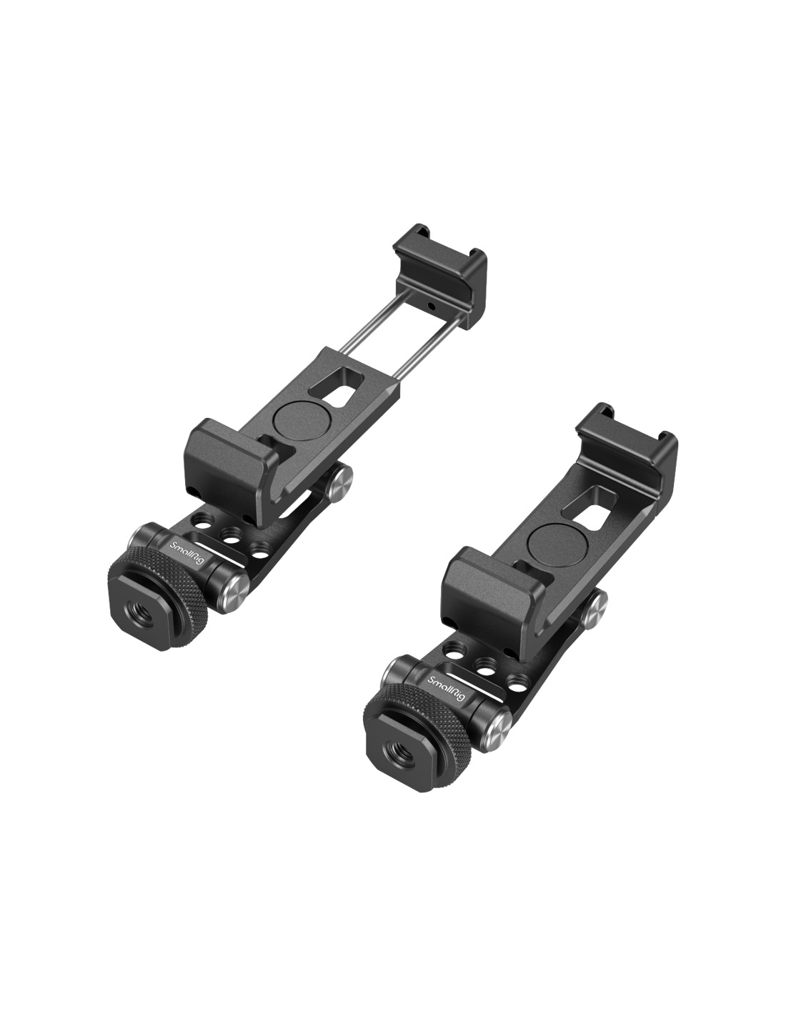 SmallRig 4301 Telefonholder til DJI Gimbals.Når den ikke er i brug, skal du løsne den kolde sko for at afmontere din telefon.Telefonholderen kan monteres på toppen af et kamera med en 1/4"-20-skrue og understøtter telefoner med en bredde på 57-88 mm.Hurtigt skift mellem liggende og stående tilstand og nem vinkelfiksering med mere end 90° rotation.Der er et 1/4"-20 gevindhul i bunden til DJI RS 3 mini eller stativ, og et koldt skoophæng på toppen til mikrofon eller lys.Note:Bærende kapacitet: 500 gNår telefonen er i portrættilstand, kan den blokere for gimbal-aksens rotation.Kompatibilitet:DJI RS 3DJI RS 3 ProDJI RS 3 miniDJI RS 2DJI RSC 2Ronin SCRonin CPakken indeholder:1x telefonholder1x kold sko-montering2x M4-skrue1x 1/4"-20 skrue2x unbrakonøgle