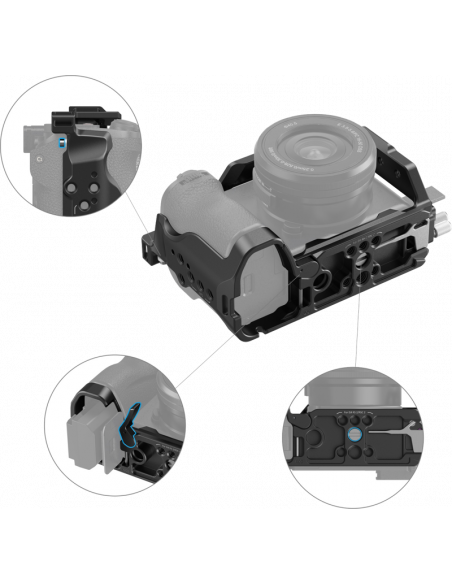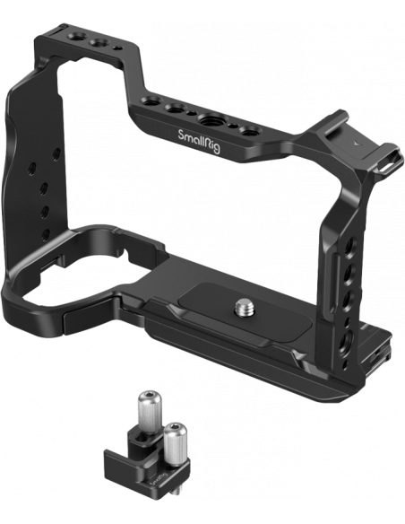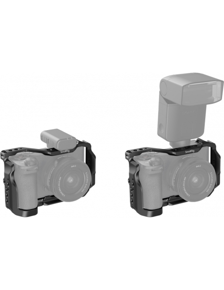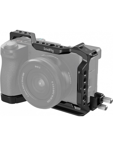 SmallRig 4336 Cage Kit til Sony A6700Buret fastgør kameraet via en 1/4"-20-skrue i bunden og en M2,5-skrue i højre side med indbyggede puder, der forhindrer ridser.Hængselarmen ved batteridøren passer bedre til kameraets kurve og giver plads til lillefingeren for mere komfort.HDMI-kabelklemmen fastgøres hurtigt til venstre side af buret ved hjælp af en tommelfingerskrue, hvilket beskytter HDMI-porten og sikrer stabil transmission.Leveres med flere monteringspunkter til fastgørelse af tilbehørinklusive 1/4"-20-gevindhuller og ARRI 3/8"-16-placeringshuller til SmallRig Top Handle 3765, Side Handle 2913Et ARRI 3/8"-16-placeringshul i toppen til SmallRig Monitor Mount 2903.kolde sko til mikrofon, LED-videolys.en NATO-skinne til SmallRig roterende NATO-håndtag (venstre side) 3260.og et QD-stik i bunden til montering af skulderremme.Arca Swiss-hurtigudløserpladen i bunden understøtter DJI RS 2 / RSC 2 / RS 3 / RS 3 Pro-gimbals samt DJI RS 2 / RSC 2-gimbals' hurtigudløserplade og SmallRig Arca-Type Quick Release Plate 3154.Buret har også huller på begge sider og i bunden til fastgørelse af tilbehør som SmallRig Hand Strap 3848, Shoulder Strap 2428 osv.Desuden medfølger en magnetisk unbrakonøgle til nem afmontering og montering.Kompatibilitet:Sony Alpha 6700Indholdet i pakken:1 x bur1x klemme til HDMI-kabel1x brugervejledning