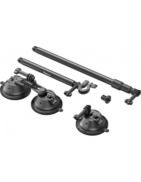 SmallRig 4380 Camera Suction Cup Car Mount Kit for Panoramic Shooting.Dette monteringssæt, der er fremstillet af en holdbar aluminiumslegering, sikrer stabilitet og lang levetid og kan bære op til 0,5 kg, så det passer til de fleste actionkameraer på markedet.Sugekoppernes one-touch-design giver mulighed for hurtig montering og demontering, mens det patenterede dobbeltlags sugekopdesign giver sikker og stabil støtte til dine optagelsesbehov.Med et justerbart område på 20° ved sugekopforbindelserne kan du nemt sætte holderen fast på buede overflader for at få alsidige optagevinkler.Teleskopstangen strækker sig fra 28 til 91 cm og har en knoplåsemekanisme i hver sektion til stabil og dynamisk optagelse uden at krympe stængerne.Støttestangen er sikkert fastgjort til teleskopstangen med en fuldt lukket stangklemme og danner en pålidelig trekantet støttestruktur, der øger udstyrets sikkerhed under brug.Med et universelt actionkamera-design med dobbelt klo giver de mange led mulighed for hurtige hældningsjusteringer, hvilket maksimerer optagelseseffektiviteten.Sættets monteringsmuligheder omfatter en dobbelt klo og en 1/4"-20-skrue, hvilket sikrer kompatibilitet med populære actionkameramærker som Insta360 X4 / X3, GoPro12 / 11 / 10 / 9, DJI action 4 / 3 m.fl.Sættets modulære design giver mulighed for flere kombinationer af komponenterne til forskellige optagelsesscenarier.De enkelte eller dobbelte sugekopper har begge dobbelte klo-grænseflader til direkte montering af actionkameraer til standard biloptagelse, mens teleskopstangen også kan fungere som en selfie-stang.Pakken indeholder:1x dobbelt sugekop1x enkelt sugekop1x teleskopstang1x støttestang1x 1/4"-20 adapter