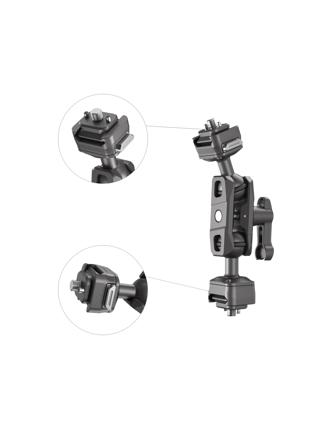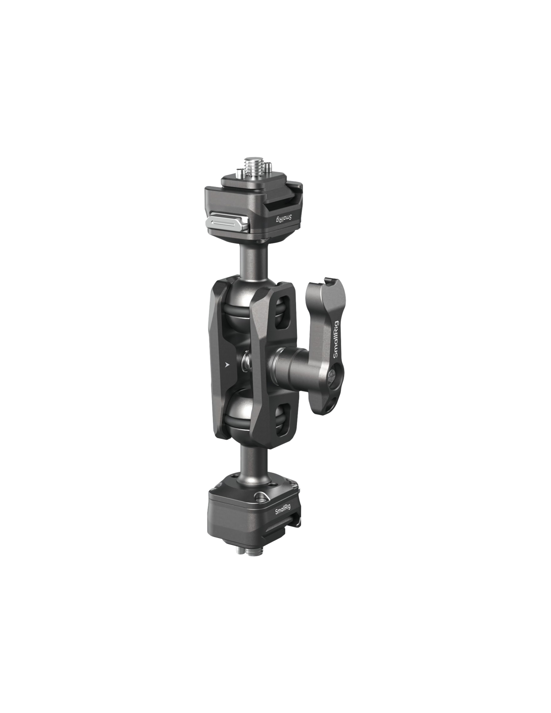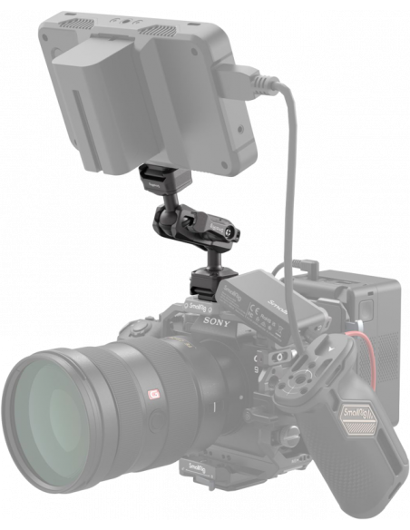 SmallRig 4488 HawkLock H21 Quick Release Magic Arm med kuglehoved.**HawkLock - Omdefinering af quick release!"HawklLock" quick release-økosystemet giver brugerne en hurtigere, mere sikker og yderst kompatibel oplevelse.Dette system med positioneringsteknologi med rullestifter omformer quick release-feltet med en banebrydende debut!Med et ø20 mm kuglehoved og 1/4"-20-skruer med aftagelige lokaliseringsstifter i begge ender forhindrer dette kuglehoved, når det bruges med SmallRig-kamerabure 4119, 3084, 4088 og skærme med lignende specifikationer for lokaliseringshuller, effektivt, at udstyret afviger, hvilket sikrer udstyrets sikkerhed.Tommelfingerhåndtaget på kuglen gør det muligt at justere forlængelsen, så det er nemt at justere til den ønskede vinkel.Med slidser i begge ender af kuglehovedets tommelfingerhåndtag øges kuglehovedets justeringsområde effektivt, hvilket giver mulighed for fleksibel placering af udstyret efter behov.Pakningen indeholder:1x HawkLock H21 Quick Release Magic Arm med kuglehoved2x silikone ring1x unbrakonøgle
