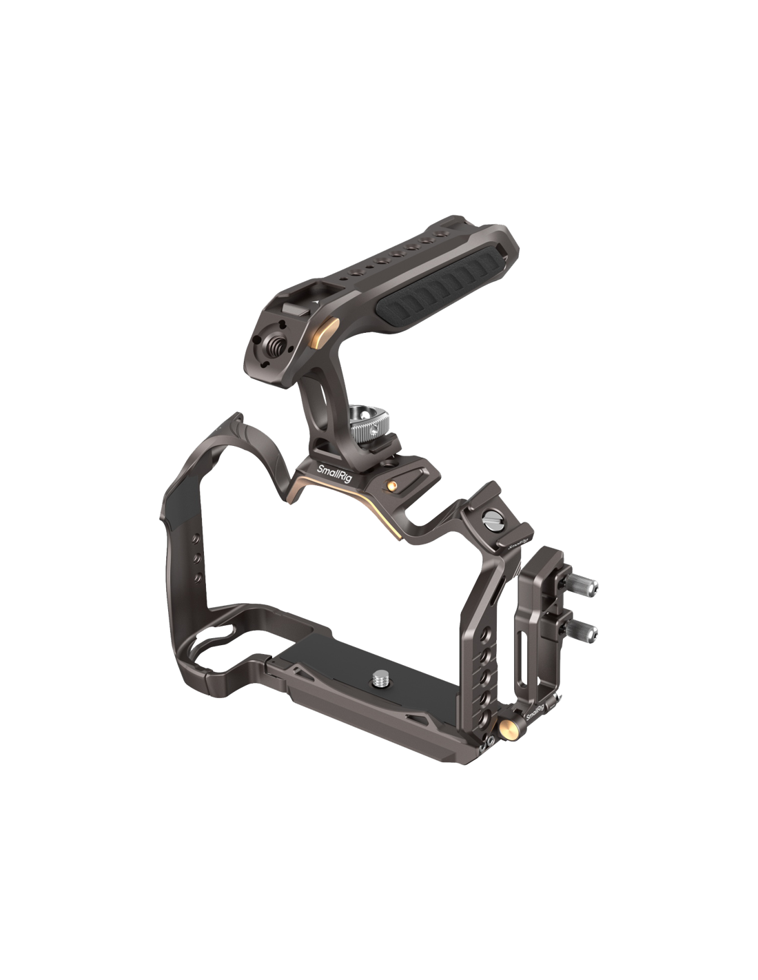 SmallRig 4522 Night Eagle Cage Kit til Nikon Z 6III.Kabelklemmen har et tryk-og-flip-design, der giver nem adgang til grænsefladerne uden at adskille dem og forhindrer utilsigtede signalafbrydelser, hvilket sikrer stabil signaloverførsel.Det aftagelige koldskofæste har anti-deflektionspositioneringsstifter i bunden.Den kan fastgøres til siderne og toppen af buret, hvilket giver mulighed for alsidig udvidelse med SmallRig-mikrofoner 3487, LED-videolys 3286 og andet tilbehør.Det ergonomiske håndtag gør det lettere at bevæge kameraet og har indbygget opbevaring til almindeligt anvendte skruer som 1/4"-20-skruer, 3/8"-16-skruer og M2,5-skruer.Sættet har forskellige udvidelsesgrænseflader, f.eks. 1/4"-20-gevindhuller, 1/4"-20-lokaliseringshuller, 3/8"-16-gevindhuller, ARRI-lokaliseringshuller, NATO-skinne, QD-montering, håndleds-/skulderremshuller.Buret kan udvides med SmallRig monitorbeslag 2903, sidehåndtag 3847, 4016, 4015, 2093, tophåndtag 2165, 3765, stangklemmer 3598, magiske arme 3875, stativer 4465, 4060, 4353, LED-videolys 3286, mikrofoner 3487 og meget mere.Den integrerede Arca-Swiss quick-release-plade i bunden understøtter stativer af Arca-typen og DJI RS 2 / RSC 2 / RS 3 / RS 3 Pro / RS 4 / RS 4 Pro gimbals, hvilket giver mulighed for nemme overgange mellem gimbals, håndholdte og stativopsætninger.Kompatibilitet:Nikon Z 6IIIEmballagen indeholder:1x bur1x montering af kold sko1x HDMI & USB-C kabelklemme1x øverste håndtag1x brugervejledning