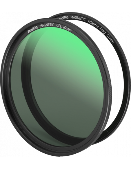 SmallRig 4582 Påsætteligt CPL-filter (67 mm)Det multi-coatede optiske glas giver pålidelig optisk kvalitet og sikrer, at de optagne billeder er fri for vignettering.Det magnetiske fastgørelsessystem giver brugerne en hurtig og effektiv oplevelse med at installere og udskifte filtre.Det er kompatibelt med SmallRigs mobile videobure, der understøtter installation af en 67 mm filteradapterring, herunder modeller som iPhone 15-serien, Samsung S24 Ultra, Vivo X100 og Vivo X100 Ultra.Udstyret med adapterringen med gevind kan filteret monteres på et 67 mm kameraobjektiv, hvilket giver en praktisk oplevelse af magnetisk filterinstallation til kameraobjektiver.Bemærk:Selv om filterdesignet reducerer forekomsten af vignettering i fotos betydeligt, garanterer det ikke fuldstændig eliminering af vignettering under alle optageforhold og kameraindstillinger.Kompatibilitet:SmallRig iPhone-serien: 4407, 4391, 4392, 4393, 4396, 4397, 4398SmallRig Samsung S24 Ultra mobilbur: 4601SmallRig Vivo-serien:4470, 4664Smallrig 67 mm filteradapter: 4585, 4587Pakken indeholder:1x CPL-filter (cirkulært polarisationsfilter)1x adapterring med gevind1x Rengøringsklud1x bærende kasse1x brugervejledning