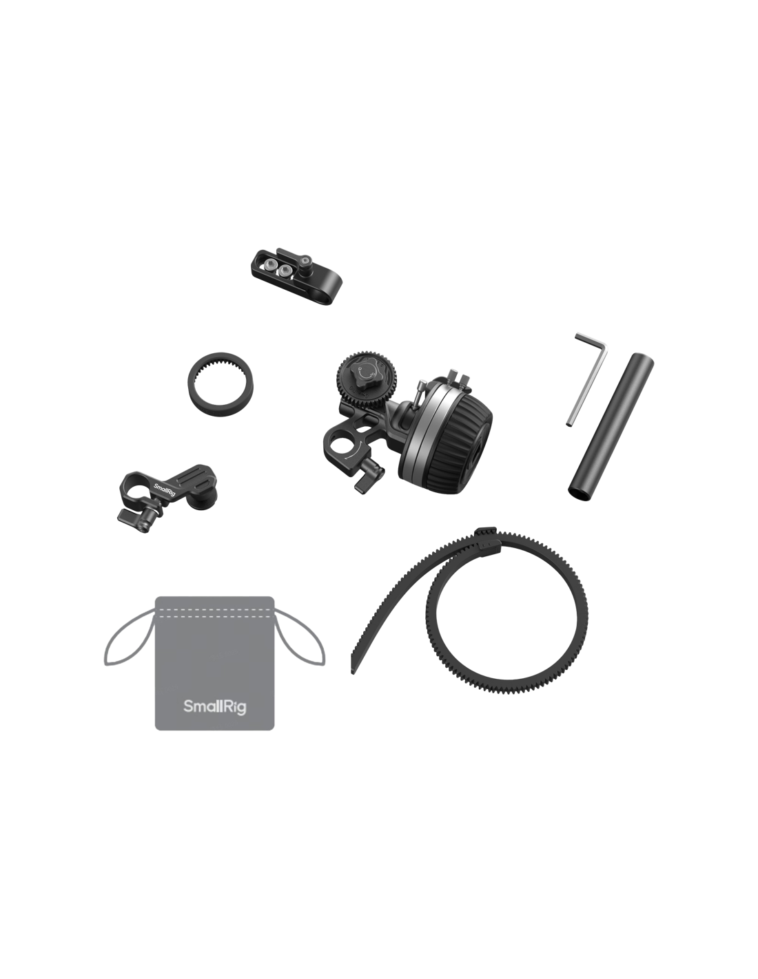 SmallRig 4745 Follow Focus F50Det trinløse dæmpningshåndtag med ét tryk giver mulighed for dynamisk dæmpningskontrolinden for et område på 0,3 - 1,0 kgf, hvilket imødekommer forskellige præferencer for objektivdæmpning,mens 2-trins A/B-stopskift og 360° hurtig push-pull-zoom forbedrer alsidigheden.alsidighed.Inkluderet er et silikonegear, der muliggør friktionsdrevet fokus forspejlløse objektiver sammen med et kompakt silikonehåndhjul, der giver et skridsikkert grebog finjusteret kontrol.  Denne følgefokus monteres ved hjælp af en Φ15 mm stang og en enkelt stangklemme til venstre eller øverst på objektivet.venstre eller øverst på objektivet, med justerbare vinkler for fleksiblekonfigurationer.   Det modulære design sikrer en hurtig og præcis opsætning til håndholdt,stativ og forskellige optagescenarier.  Emballagen indeholder:. Følg med Focus F50 Φ15mm Stang 15mm Enkelt stangklemme Snap-on Gearring Allen skruenøgle Bæretaske taske Brugervejledning Manual
