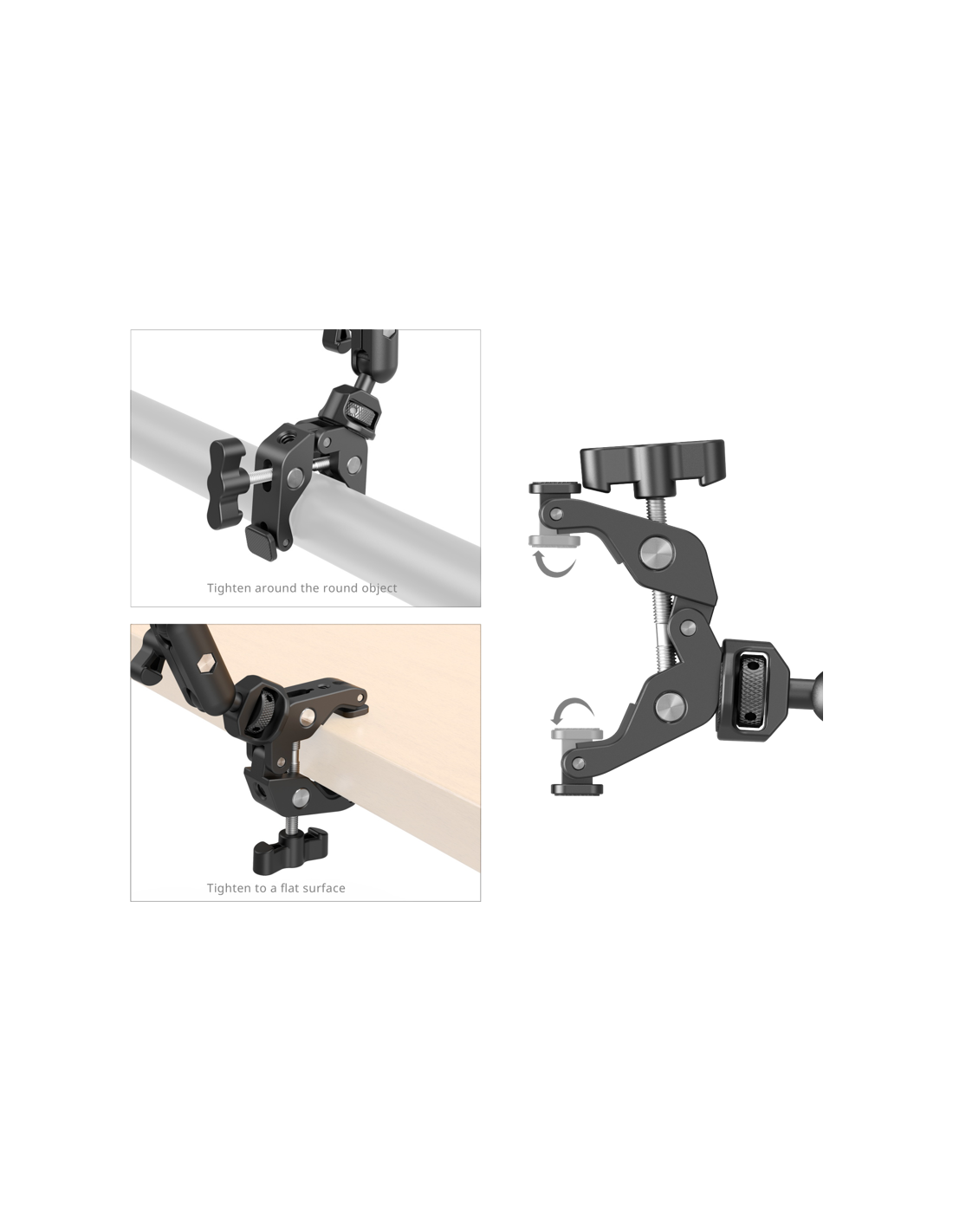 SmallRig 4766 Magic Arm med krabbeklemmesæt.Den justerbare magiske arm fastgøres til krabbeklemmen med en anti-deflektion 1/4"-20 gevindskrue, der sikrer en sikker forbindelse mellem klemmen og armen.Krabbeklemmen strækker sig op til 50,0 cm og tilpasser sig forskellige overflader og genstande inden for dens rækkevidde, mens silikonepuder ved drejespidserne giver et sikkert greb uden at beskadige overfladerne.Kuglehovedet på den magiske arm har skridsikre gummiskiver for at øge friktionen og sikre en strammere lås på enheden.Telefonklemmen er designet til at rumme telefoner fra 7,0 til 10,0 cm i bredden.Adapteren med 1/4"-20 til 3/8"-16-gevind er kompatibel med mikrofoner til livestreaming, podcasting og forskellige lydoptagelsesscenarier.Hoveddelen er fremstillet af en holdbar aluminiumslegering og kan effektivt bære op til 0,25 kg.Vi anbefaler også at bruge SmallRig Crab-Shaped Clamp with Ballhead Magic Arm 3757 og SmallRig Portable Dual Suction Cup Camera Mount SC-2K 3566 til fotografering med letvægtsudstyr.Emballagen indeholder:1x magisk arm1x krabbeklemme1x telefonholder1x 1/4"-20 til 3/8"-16 gevindadapter