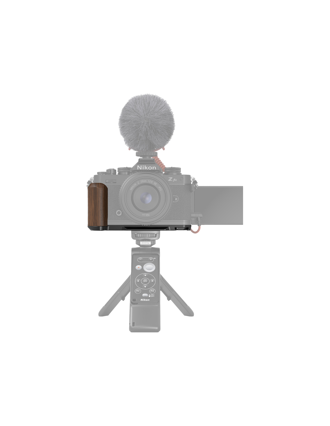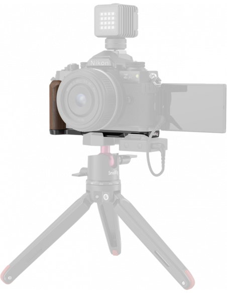 SmallRig 4802 L-formet træhåndtag til Nikon Z fc SortGrebet fastgøres til kameraet via en 1/4"-20 D-ringskrue i bunden, og de indbyggede silikonepuder forhindrer ridser.Der er et 1/4"-20-gevindhul i bunden til fastgørelse af f.eks. plader af Manfrotto-typen og stativer.Derudover har bundpladen en indbygget koldsko, der gør det muligt at fastgøre mikrofon, lys og andet tilbehør.Pladen har også en åbning til en håndledsrem.Grebet har et kompakt og let design, som er nemt at bære rundt på.Kompatibilitet:Nikon Z fcEmballagen indeholder:1x L-formet greb