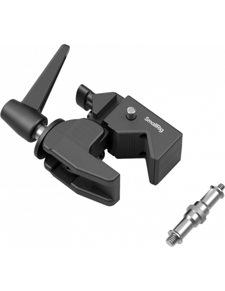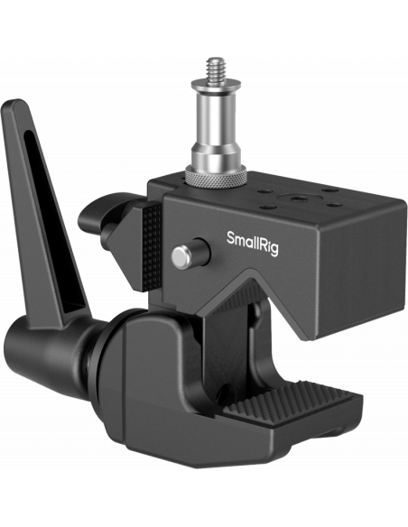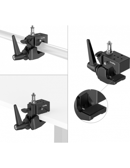 SmallRig 4861 Super Clamp Support Kit.Den er udstyret med en 1/4"-20 topskrue, 1/4"-20 gevindhul og et M5 gevindhul, der understøtter en belastningskapacitet på 15 kg.Sættet giver mulighed for alsidig udvidelse med forskellige SmallRig Magic-arme (3873, 4899, 4900 m.fl.).Klemmen kan fastgøres til runde rør med en diameter på 10-60 mm og flade genstande med en tykkelse på op til 50 mm med den aftagelige kile.Den høje tilpasningsevne gør det muligt hurtigt at fastgøre kameraer, mikrofoner, skærme, videolys og andet udstyr til runde rør, borde, stativben og stabilisatorhåndtag.Den robuste klemme har integrerede puder, der sikrer effektiv beskyttelse af de fastspændte genstande og samtidig forbedrer grebets stabilitet.Kompatibilitet:Kompatibel med cylindriske genstande med en diameter på 10-60 mmMaksimal fastspændingsevne for flade overflader er op til 50 mm tykkelsePakken indeholder:1x Super Clamp1x 1/4"-20 & 3/8"-16 topskrue