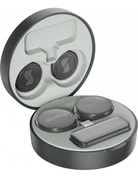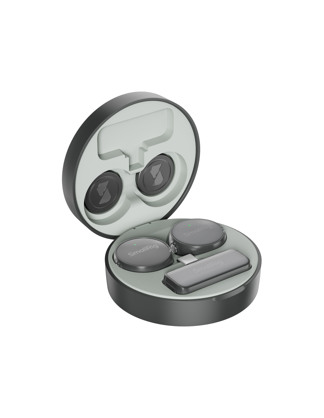 SmallRig S 60 trådløs mikrofon.Den knapstore mikrofonsender (TX), der kun vejer 7,9 g, giver fremragende bærbarhed og stilfuld æstetik til diskret brug.Den har en LDS-antenne (laser direct structuring), som sikrer stabil signaloverførsel på op til 300 m.Senderen bruger et tilpasset, meget retningsbestemt mikrofonhoved til at reducere elektromagnetisk interferens og støj, hvilket giver en klar og ren lydoptagelse.Den indbyggede DSP-chip med høj opløsning muliggør 48 kHz/24-bit lydoptagelse og understøtter one-touch DSP-støjreduktion for forbedrede lyddetaljer og et bredere dynamisk område.Senderen (TX) har en batterilevetid på 11 timer pr. opladning, mens den kombineret med opladningsetuiet når næsten 44 timer, hvilket er 1,5 gange længere end lignende produkter.Den har brugervenlige funktioner som f.eks. justering af forstærkning på 3 niveauer og praktisk understøttelse af mobilopladning på modtageren.Derudover har den en mute-funktion med dobbelt tryk på senderen.Disse funktioner gør den perfekt til mobiloptagelser og livestreaming og giver en enkel, effektiv lydoptagelse i høj kvalitet.Mikrofonen er udstyret med en række tilbehør og tilbyder alsidige bæremuligheder som f.eks. magnetisk fastgørelse i kraven, hængende i nakken, håndholdt og clip-on.Derudover understøtter den brugen af en vindskærm, der kan sættes fast på et silikonefæste, hvilket giver fordele i form af vindtæthed og støjreduktion.Brugsscenarier:Designet til lydoptagelse ved skabelse af letvægtsvideoindhold. Velegnet til vlogging, indhold til sociale medier, live streaming, interviews og dokumentarfilm.Kompatibilitet:Kompatibel med iPhone 15-serien og nyere Apple-modellerKompatibel med Android-modeller med USB-C-grænsefladerPakken indeholder:2x mikrofonsender (TX)1x modtager (RX)1x opladningsetui2x selvklæbende pude2x selvklæbende halsrem2x Back Clip2x Furry Windscreen1x USB-C opladningskabel1x brugervejledning