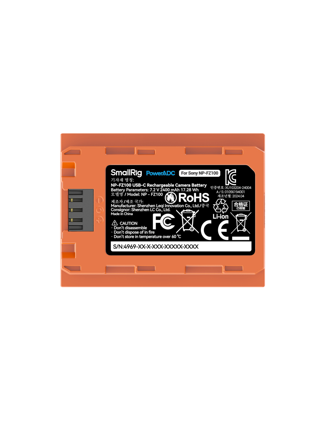 SmallRig 4969 NP-FZ100 USB-C Rechargeable Camera Battery Orange