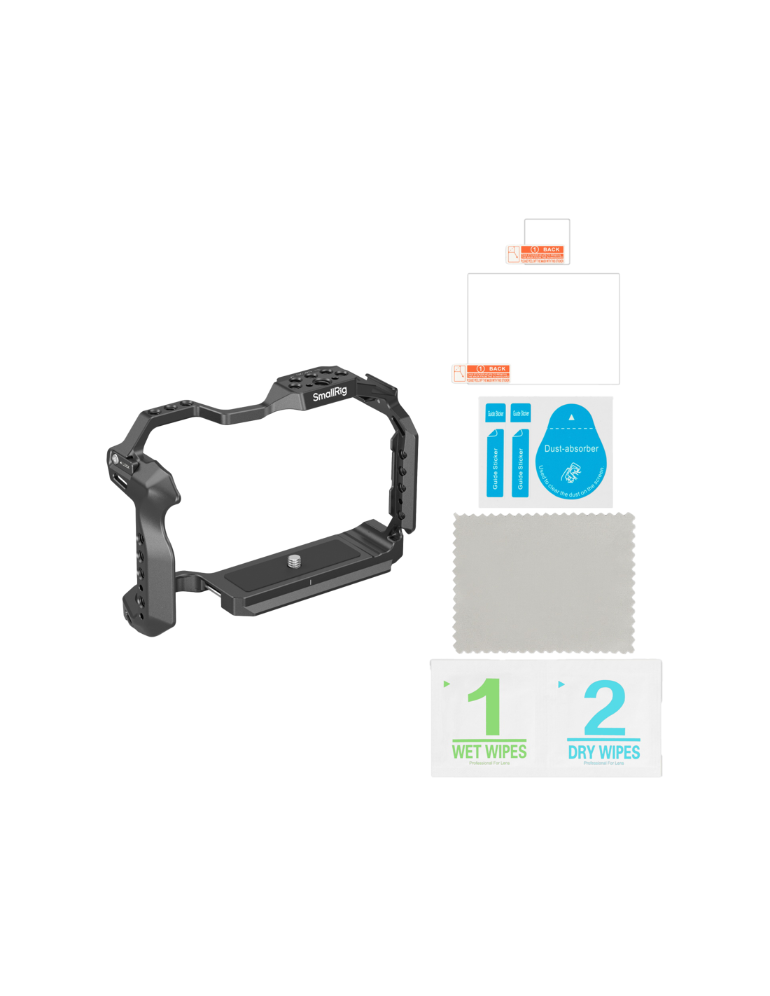 SmallRig 4978-bur til Canon EOS R5 Mark II.Buret har en sikker låsemekanisme med en 1/4"-20-skrue i bunden og to placeringsblokke i siden samt integrerede silikonepuder, der forhindrer ridser på kameraet.Buret er designet med præcision og forhindrer ikke adgang til kameraets knapper, grænseflader, drejeknapper, flipskærm, batterirum eller kortplads.Buret har flere 1/4"-20-gevindhuller og 1/4"-20-placeringshuller for kompatibilitet med ekstra tilbehør som SmallRig-sidehåndtag, magiske arme, monitorbeslag, Manfrotto-basisplader og L-formede monteringspladesæt.Det har også et koldt skobeslag til fastgørelse af mikrofoner og belysningstilbehør.Buret har almindelige stropåbninger, der er kompatible med SmallRig-håndledsremme, en innovativ stropåbning til nedadgående ophængning for ekstra objektivbeskyttelse og en QD-grænseflade, der er kompatibel med QD-skulderremme med hurtig udløsning.Arca-Swiss-basispladen med hurtigudløser giver mulighed for direkte montering på stativer/hoveder af Arca-typen og DJI RS 2 / RSC 2 / RS 3 / RS 3 Pro / RS 4 / RS 4 Pro-stabilisatorer, hvilket muliggør hurtige overgange mellem stabilisator-, håndholdt- og stativopsætning.Desuden har buret en magnetisk dobbelt hovednøgle i bunden for nem montering og demontering.Buret leveres med en holdbar, ridsefast skærmbeskytter i hærdet glas med en overfladehårdhed på 9H og en IK03-klassificering for slagfasthed.Kompatibilitet:Canon EOS R5 Mark IIEmballagen indeholder:1x bur1x Skærmbeskytter i hærdet glas1x brugervejledning