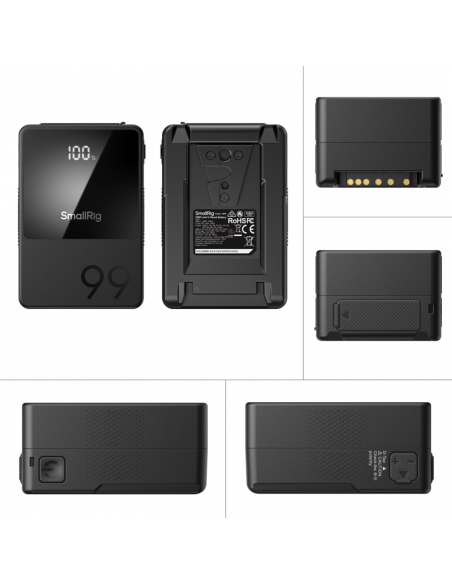 SmallRig 5048 VB99 mini V Mount batterisæt (3580 + 4064)VB99 mini V Mount Battery er udstyret med førsteklasses LG-celler og har PD3.0 100W hurtigopladningsteknologi.Det har også flere grænseflader for at imødekomme dine forskellige strømbehov under optagelse, hvilket sikrer sikkerhed og pålidelighed.Det drejelige design af V-mount-pladen giver hurtig adgang til kameraets flipskærm, mens en foldbar struktur letter opbevaringen.VB99 mini V-mount batterisæt er en bærbar, fleksibel og højtydende strømløsning, der opfylder skabernes strømbehov i forskellige situationer.Kompatibilitet:VB99 mini V Mount Battery - MILC, videokamera, kamera, monitor, følgefokus, billedsender, LED-videolys, mobiltelefon, tablet, bærbar computer osv.V-Mount Battery Mount Plate - Spejlløse / DSLR-kameraer under 111 mm tykke, f.eks:Sony Alpha 7R V / Alpha 7 IV / Alpha 7S III / Alpha 7C / FX3 / FX30Canon EOS R5C / R5 / R6 / R6 Mark II / R7 / R10 / R / RPPanasonic LUMIX S1H / S1R / S1 / S5 / S5 II / GH6 / GH5Pakken indeholder:1x VB99 mini V Mount-batteri1x V-Mount batteriplade1x Arca-Swiss hurtigudløserplade1x V-Mount bagplade1x brugervejledning