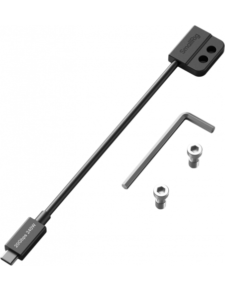 SmallRig 5078 USB-C-datakabel han til hun  Hunstikket kan fastgøres med to skruer til bure eller L-formede monteringsplader med standard 1/4"-20-gevindhuller.   Når det kombineres med et bur eller en L-formet monteringsplade, giver det mulighed for fleksibel omplacering af USB-C-porten for at forhindre utilsigtede afbrydelser.Kompatibilitet:Understøtter USB3.2 Gen 2x2, 3.1, 3.0 og 2.0 standarderKompatibel med USB PD 3.1, bagudkompatibel med PD 3.0 / 2.0Pakken indeholder:USB-C datakabel2x 1/4"-20-skrueAllen-nøgle