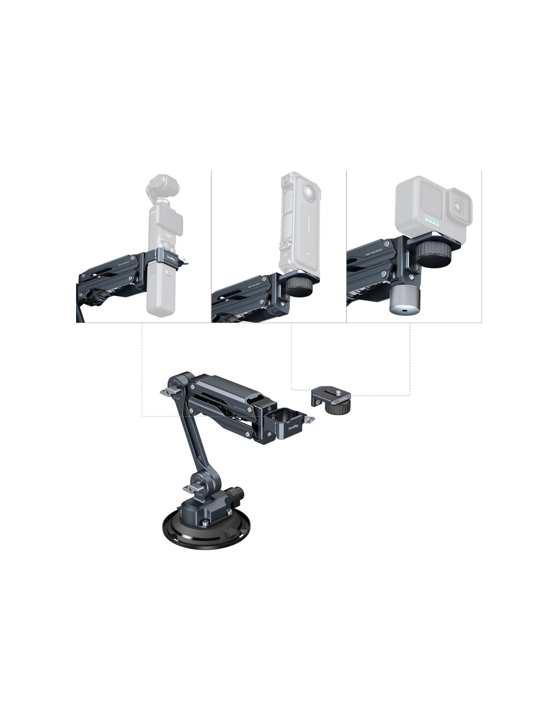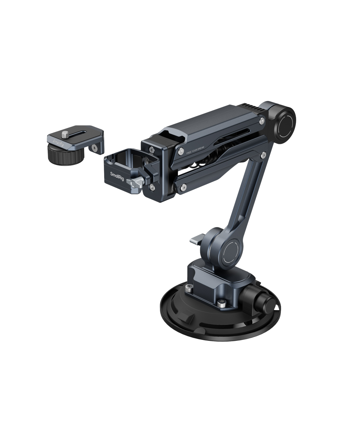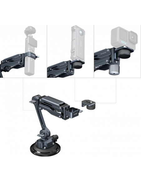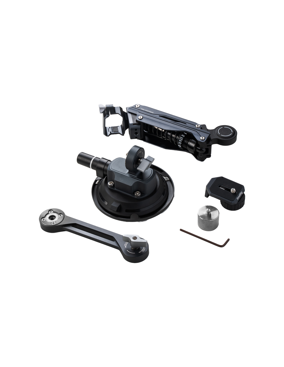 SmallRig 5123 Mini Shock Absorber Arm til DJI Osmo Pocket 3 / GoPro HERO13 / Insta360 X4Støddæmperarmen har en fjeder med høj tilbagespringning og et hydraulisk dæmpningssystem, der reducerer lodrette vibrationer betydeligt under optagelse i køretøjet for at levere stabile optagelser.Armen er udstyret med en justeringsknap til dæmpning for at tilpasse sig varierende vejforhold, hvilket gør den velegnet til udfordrende optagelsesmiljøer.  Den inkluderer en 10 cm manuel vakuumsugekop, der understøtter enheder, der vejer op til 600 g, og som dækker de fleste almindelige actionkameraer.   Sugekoppen leveres med et støvcover, der beskytter mod ridser og forlænger dens levetid.  Der medfølger desuden et hårdt opbevaringsetui til sikker opbevaring og nem transport.  Kompatibilitet:Kompatibel med actionkameraer med et 1/4"-20-gevindhul i bunden, f.eks. DJI Osmo Pocket 3, GoPro HERO13 Black og Insta360 X4 / X3.Kompatibel med actionkameraer med bur (med et 1/4"-20-gevindhul), såsom GoPro HERO12 Black, HERO11 Black, HERO10 Black, HERO9 Black og DJI Osmo Action 5 Pro / 4 / 3.Pakken indeholder:StøddæmperstøtteSugekopSugekop-støvdækselForlængerarmAdapterMontagepladeModvægtAllen WrenchBæretaske