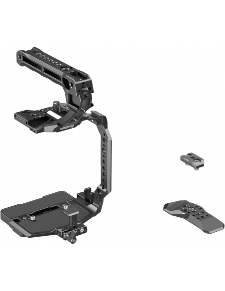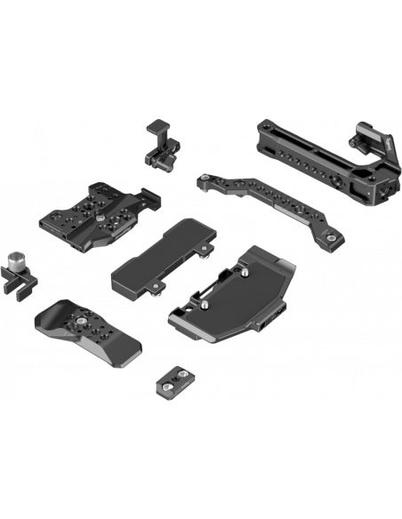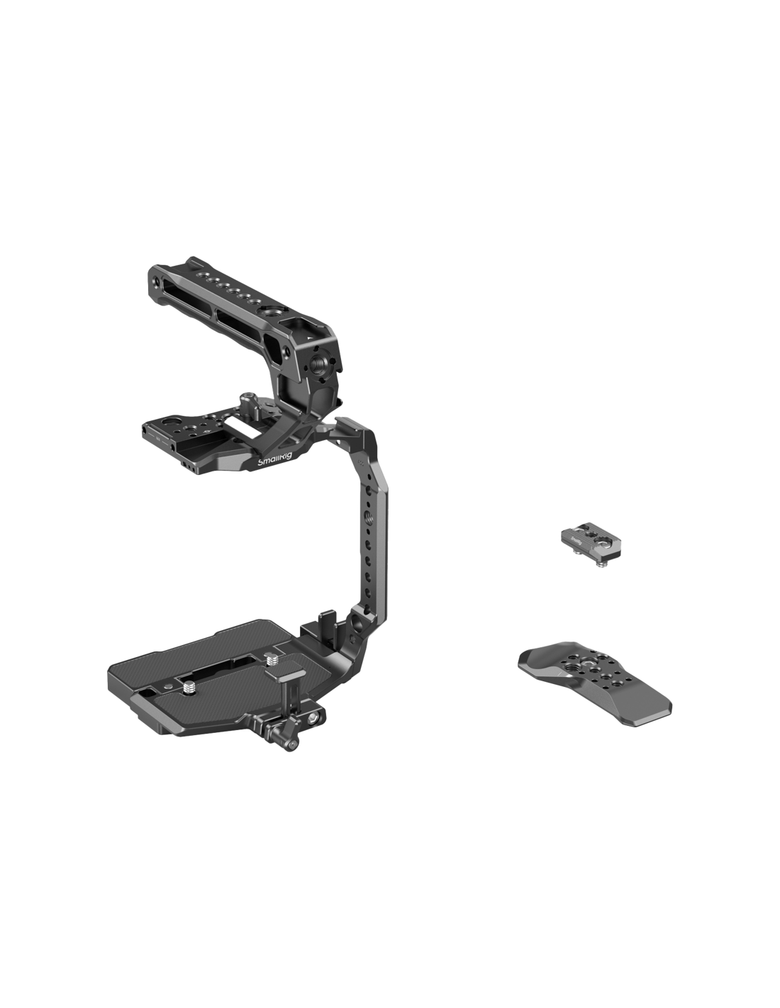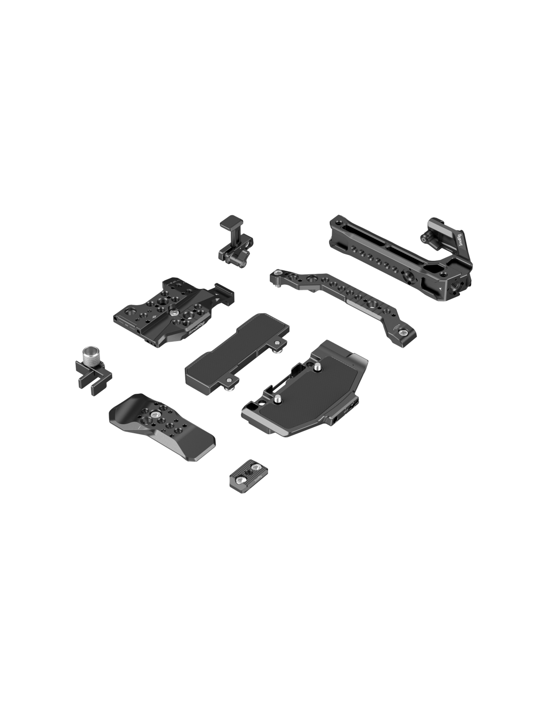SmallRig 5136 Cage Kit til Canon EOS C80.Det modulære design understøtter brugerdefinerede opsætninger, mens de forskellige monteringsgrænseflader - 1/4"-20 og 3/8"-16 gevindhuller, 1/4"-20 placeringshuller, ARRI 3/8"-16 placeringshuller, M3 gevindhuller, koldskosbeslag, H21 NATO-skinner og QD-stik - giver mulighed for kompatibilitet med SmallRigs sidehåndtag, magiske arme, monitorbeslag, basisplader med dobbelte stangklemmer og follow focus stangklemmer.Det modulære basispladedesign tilbyder to konfigurationer:Når du bruger monteringspladen, kan den monteres på stativer, ARRI BP8-basisplader og skulderrigge.Hvis man fjerner monteringspladen og bruger den integrerede ARCA-plade, kan man montere den direkte på DJI RS 2, RS 3 Pro og RS 4 Pro gimbals.Den ergonomiske højre sideplade forbedrer grebet og har flere gevindhuller til fastgørelse af tilbehør som stativer eller L-formede monteringsplader.Den modulære NATO-skinne, der er designet til at matche det originale håndtag med ARRI-roset, kan monteres på toppen og siderne af buret for problemfri vandret og lodret optagelse.Dette bur-sæt er kompatibelt med Canons OEM-mikrofonbeslag, fokusplanmærker og ledninger til sko uden for kameraet (OC-E4A).Objektivadapterstøtten kan justeres med 19 mm for at passe til forskellige objektivadaptere, f.eks. PL-RF, hvilket reducerer belastningen på kamerafæstet og forhindrer deformation eller beskadigelse.Derudover indeholder sættet en HDMI-kabelklemme til stabil dataoverførsel og et ergonomisk tophåndtag med indbygget skridsikker silikone til et behageligt greb.Der medfølger også en magnetisk unbrakonøgle til nem montering og demontering.Kompatibilitet:Canon EOS C80Emballagen indeholder:Øverste pladeVenstre pladeHøjre pladeBundpladeMonteringspladeTophåndtag med NATO-klemmeKabelklemmeNATO-skinne med ARRI-rosetStøtte til objektivadapterBrugervejledning