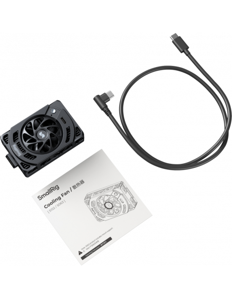 SmallRig 5152 Køleventilator til udvalgte Sony-kameraerKøleventilatoren kan justeres i to hastigheder for at imødekomme forskellige optagelsesbehov.Springbelastet snap-in-monteringsdesign til hurtig montering og afmontering, nem adgang til køleventilatoren og opbevaring af kameraets LCD-skærm.Kan bruges med eller uden kamerabur, lettere og friere at bruge. Køleventilatoren kan bruges med eller uden kamerabur.Køleventilatoren er kompatibel med SmallRig V-Mount Battery Mount Plate Kit 4505, 4064 & 4063, og med V-Mount batteri 3579, 3580 & 4292 brug, varmeafledning, strømforsyning uden bekymring. Køleventilatoren er kompatibel med SmallRig V-Mount Battery Mount Plate Kit 4505, 4064 & 4063.Bemærkning!Dette produkt har ikke et indbygget batteri og skal strømforsynes ved at tilslutte en ekstern strømkilde for at fungere korrekt. Tekniske data:Driftsspænding: 4,5-10,8 VDriftsstrøm: 1-2ADriftseffekt: 5-18WDriftstemperatur: 0 til 45℃Køleprincip: TEC-kølingStøjniveau:Normal tilstand: <40dBForbedret tilstand: <50dBBlæserhastighed:Normal tilstand: 4500RPMForbedret tilstand: 7000RPMKompatibilitet:Sony ZV-E1 / ZV-E10 II / ZV-E10 / ZV-1 / ZV-1F / Alpha 7 IV / Alpha 7S III / Alpha 7C / Alpha 7C II / Alpha 7CR / Alpha 6700 / FX3 / FX30.Emballagen indeholder:KøleblæserUSB-C-kabelBetjeningsvejledning