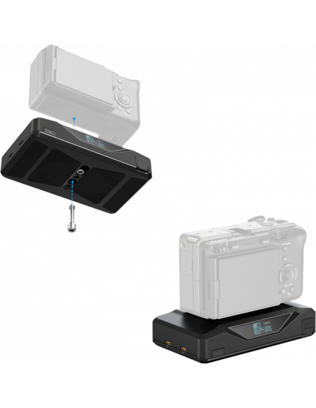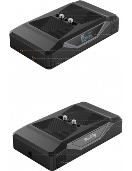 SmallRig 5248 CB75 Camera Base Battery KitDet dobbeltsidede monteringssystem omfatter en øverste 1/4"-20-skrue til direkte montering på kameraer eller bure og et nederste 1/4"-20-gevindhul til montering på stativ, hvilket eliminerer behovet for adaptere og skaber en strømlinet strømløsning.   Når den bruges sammen med Arca-Swiss quick release-monteringsplader og kompatible bure, kan den nemt skydes ind med automatisk låsning med et enkelt klik, hvilket gør opsætningen betydeligt mere effektiv.Udstyret med alsidige strømudgange - herunder to D-Tap-porte, to 65W USB-C-porte og en 8V DC-port - kan enheden drive flere enheder samtidigt, hvilket gør den ideel til krævende produktionsscenarier.  Den 65W hurtige opladningsteknologi giver mulighed for en fuld opladning på kun 2 timer, hvilket sikrer uafbrudte optagelsesplaner.  På trods af sin slanke profil på 3 cm har batteriet en betydelig kapacitet på 73,8Wh, som kan understøtte professionelt udstyr gennem hele dagen.Premium LG-battericeller integreres med robuste beskyttelseskredsløb for at levere stabil, pålidelig strøm med forbedret sikkerhed.  HD-skærmen i fuld farve giver strømovervågning i realtid for effektiv energistyring.  Denne strømløsning i professionel kvalitet opfylder alle centrale behov - fra øjeblikkelig montering og strømforsyning til flere enheder til hurtig genopladning - hvilket gør den til det ideelle strømfundament for filmfolk.  Produktdimensioner: 149,0 x 86,0 x 49,0 mmProduktvægt: 613,0 ± 10,0 gBatteriparametre: 14,76 V/5.000 mAh/73,8 WhBatterikapacitet: 20.000 mAh (4×5.000 mAh)Rated Total Output: 73,8 WD-Tap1 / D-Tap2 Input: 16,8 V/6 A (maks.)D-Tap1 / D-Tap2 Output: 10,4-16,8 V/8 A (Max)USB-C1 Input/Output:65 W (Max)5 V/3 A, 9 V/3 A, 12 V/3 A, 15/3 A, 20 V/3,25 AUSB-C2 input/output:65 W (Max)5 V/3 A, 9 V/3 A, 12 V/3 A, 15/3 A, 20 V/3,25 AUSB-C1 + USB-C2 Simultan udgangseffekt: 100 W (maks.)USB-C1/USB-C2 Support Protocols: PD3.0/QC2.0/QC3.0/PPS/AFC/DCP-1.5 A/APPLE-2.4 A8V-OUT Output: 7,8-8,4 V/3 A (maks.)Afladningsspænding: 10,4 VAfladningstemperatur: 0℃-45℃Afladningstemperatur: -15℃-60℃Materiale: Aluminiumslegering+PC+ABSPakken indeholder:CB75 Base BatteryHawkLock H38 Arca-Swiss Quick Release Mount Plate100W USB-C til USB-C PD-kabel (30 cm)2x unbrakonøgleBedriftsinstruktion