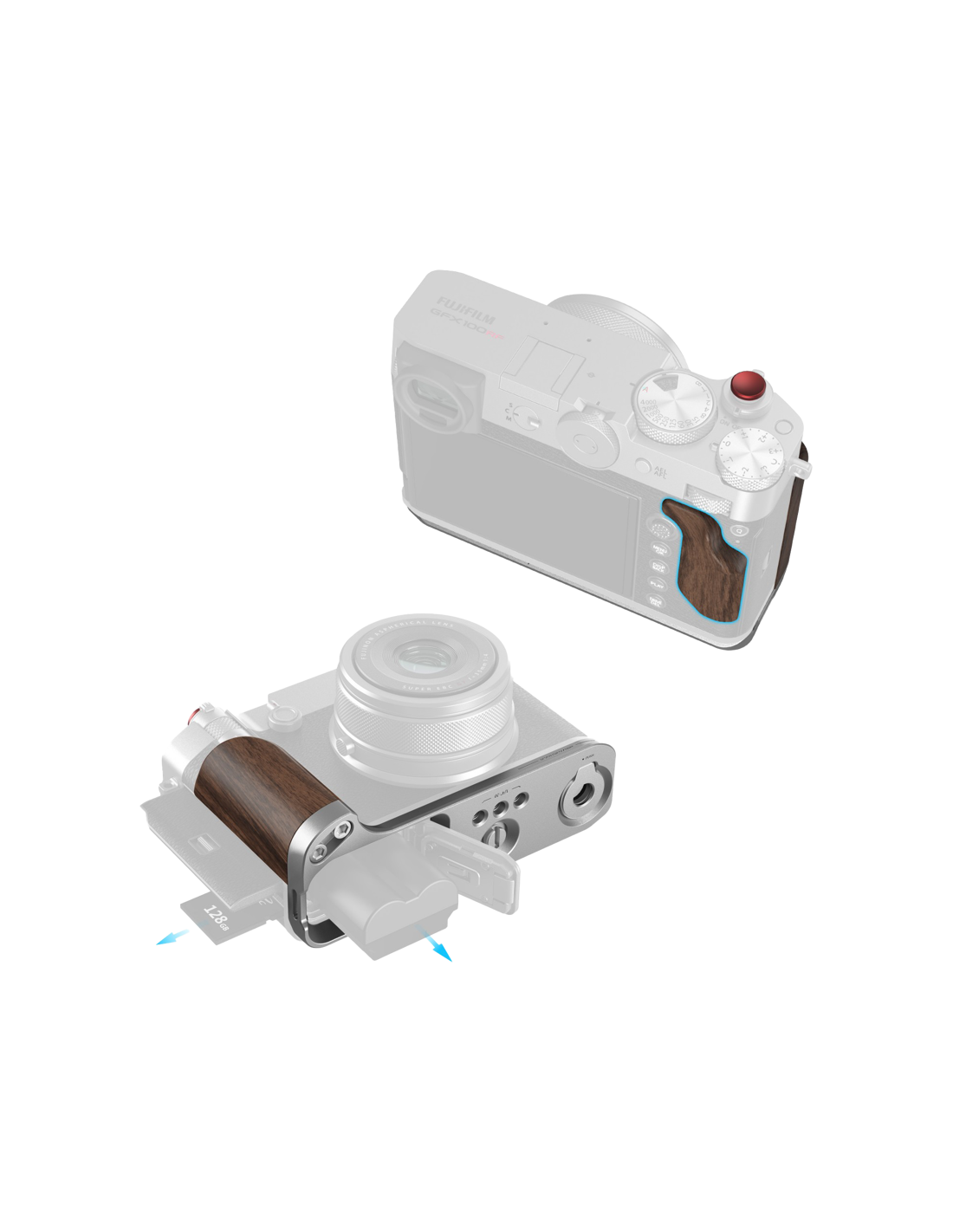 · Dual-sided grip support for superior comfort and grip· Natural wood dual-sided handle grip adds a touch of retro charm to the camera· Back Thumb Pad uses 3M adhesive for secure, residue-free attachment· Integrated Arca-Swiss quick release plate for swift tripod mounting· Full access to all interfaces, including the battery compartment, focus controls, and card slot· Lightweight and compact, weighing only 70g / 2.5oz· Complimentary concave shutter button cap for improved tactile feedback.