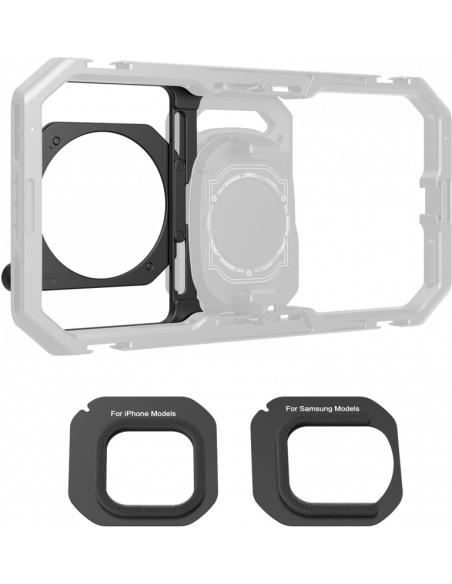 SmallRig 5277 67 mm filteradapter med gevind og aftagelige solskærme til Universal Phone Cage 4299 Den indeholder to udskiftelige solskærme, der passer til en lang række telefonmodeller, herunder iPhones, Samsung og Android-smartphones med cirkulær linse, hvilket minimerer lyslækager og flares. Adapteren kan justeres vertikalt ved hjælp af en knap på højre side, hvilket sikrer problemfri kompatibilitet med forskellige telefonmodeller.Kompatibilitet:iPhones, Samsung og Android-smartphones med cirkulær linse.(Delvis begrænsning: Vignettering kan forekomme, når du bruger ultravidvinkeltilstanden på Huawei Mate 60 Pro)Pakken indeholder:67 mm filteradapter med gevindHætteAllen WrenchBrugervejledning