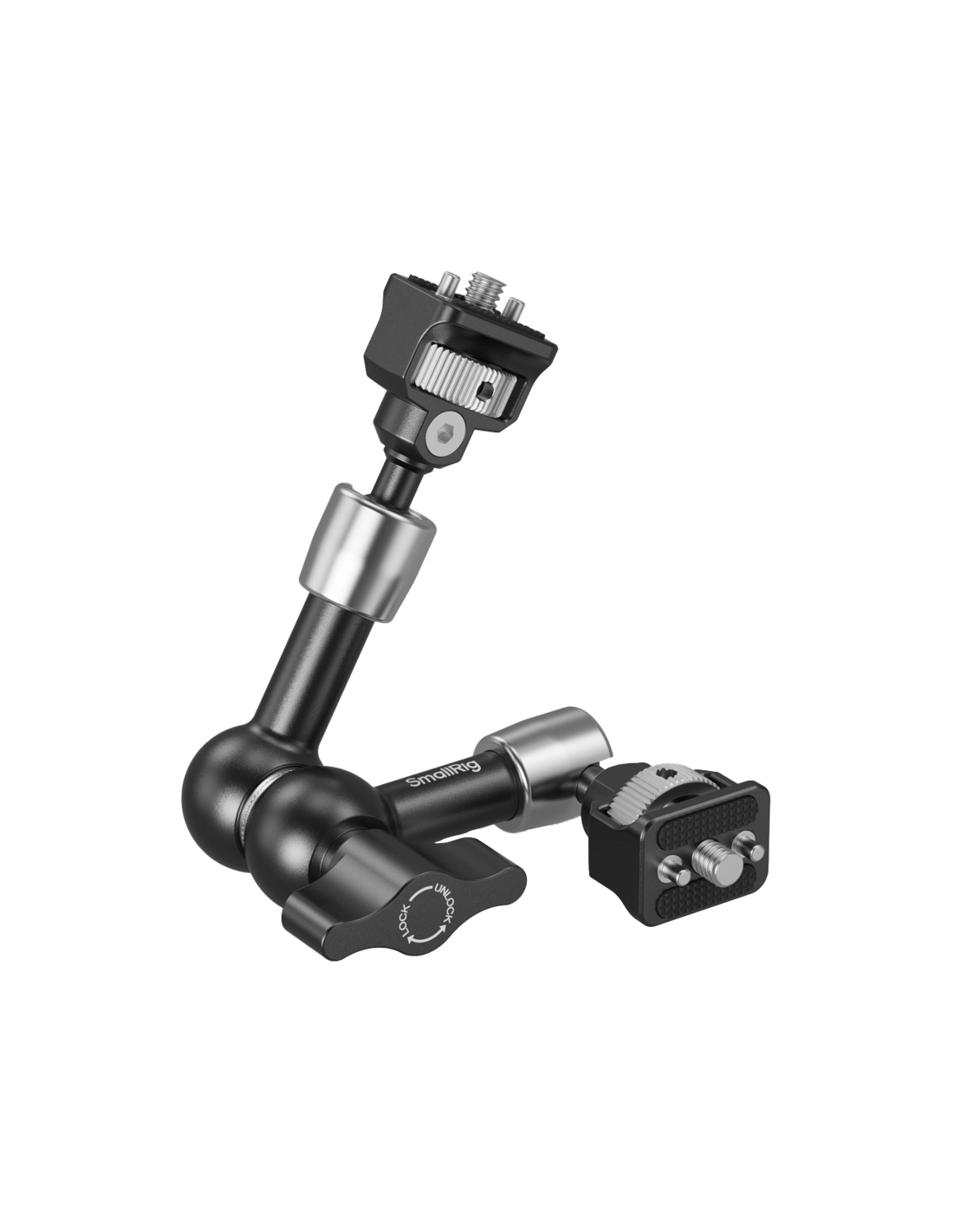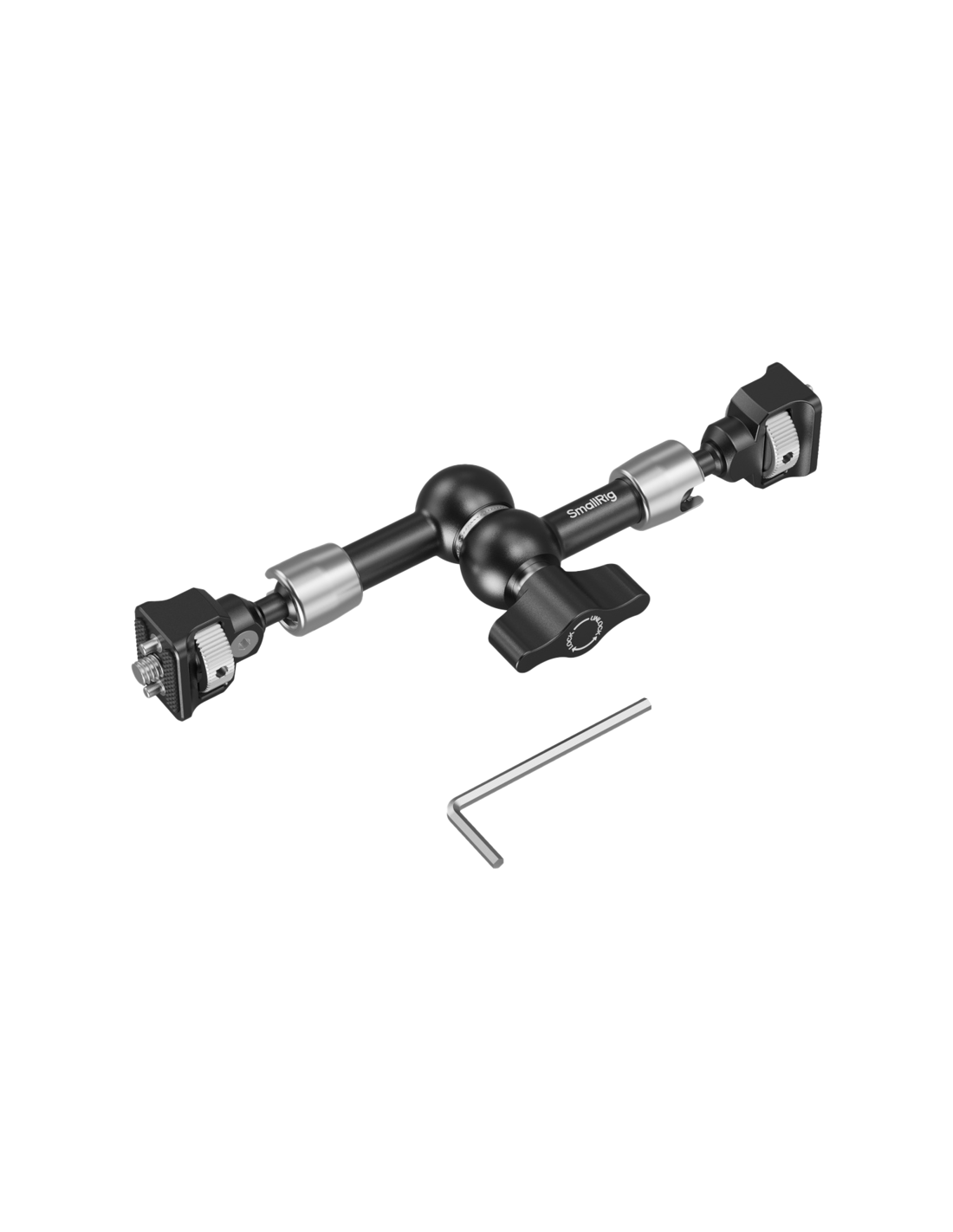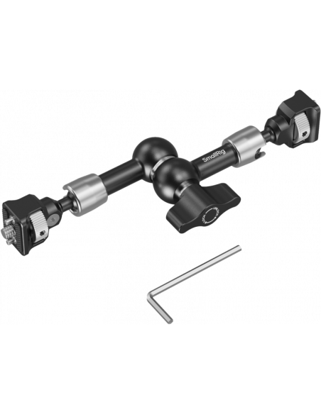 SmallRig 5308 Magic Arm Support 7"  Leddet er designet med en riflet fingerskrue til nem fastgørelse uden brug af værktøj, suppleret med et sikringshul til yderligere stramning ved hjælp af den medfølgende unbrakonøgle.   Kuglehovedet gør det muligt at justere 360°, mens armen kan bære en maksimal belastning på 1,5 kgFor at beskytte dit udstyr mod ridser er der indbyggede beskyttelsespuder i tilslutningsområdet.   Med præcis CNC-bearbejdning garanterer denne magiske arm enestående styrke og holdbarhed, og den er fremstillet af aluminiumslegering i luftfartskvalitet og rustfrit stål.Pakken indeholder:Knurret magisk armAllen-nøgle