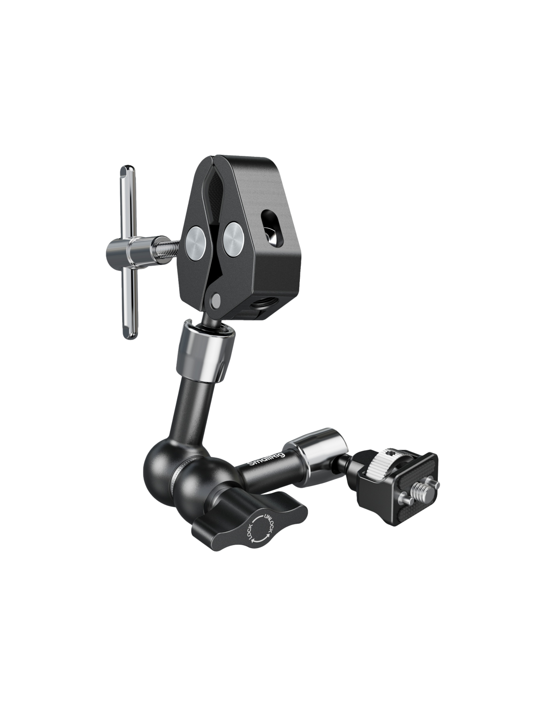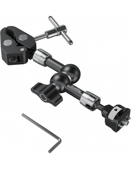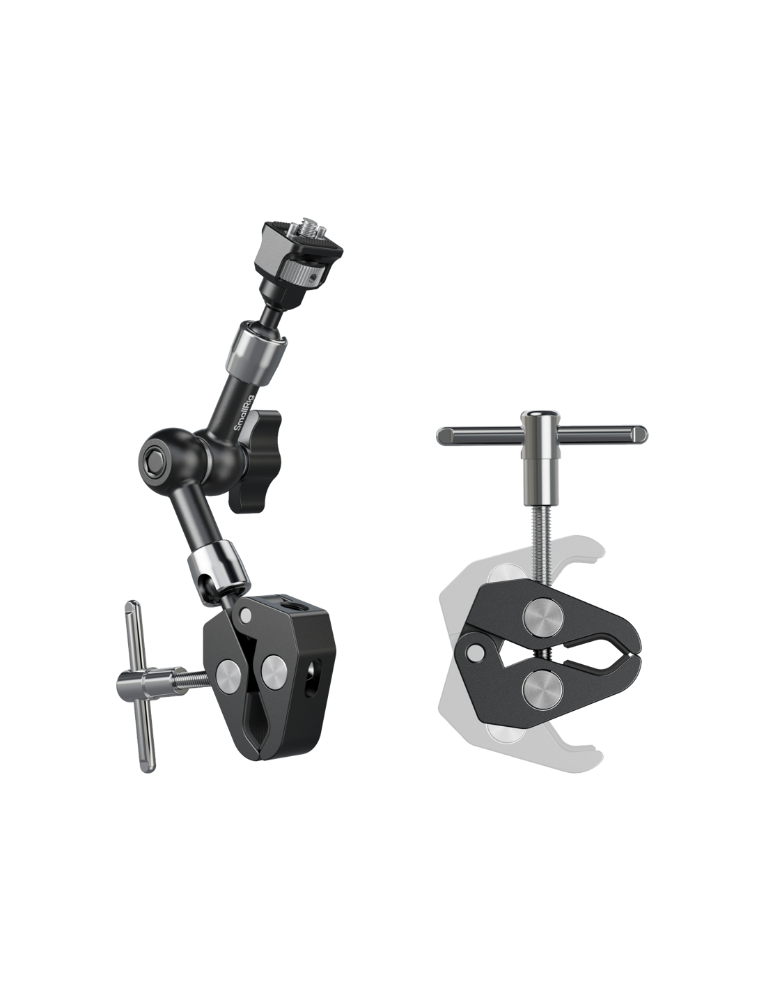 SmallRig 5310 Magic Arm med krabbeformet klemme 7"  Kuglehovedet giver mulighed for glatte 360°-justeringer, hvilket muliggør direkte montering af actionkameraer, skærme, videolys og mikrofoner.   Denne magiske arm forhindrer effektivt vridning af enheder - såsom SmallRig-bure til GoPro, bure til Insta360 X4 og bure til DJI Action 5 Pro - der har anti-vridningshuller med samme specifikation, hvilket sikrer sikker og stabil optagelse.Den krabbeformede klemme har et anti-twist-design ved forbindelsespunktet med den magiske arm for at forhindre, at den løsner sig eller falder af.   Den passer til rør, borde, stativben eller håndholdte stabilisatorringe med en diameter fra 15 til 40 mm og har indbyggede puder for øget stabilitet og beskyttelse.Konstrueret af CNC-bearbejdet aluminium i rumfartskvalitet og rustfrit stål understøtter dette værktøj en maksimal nyttelast på op til 1,5 kg og giver lang levetid.5 kg, hvilket giver en enestående holdbarhed.  Emballagen indeholder:Knurret magisk armKrabbeformet klemmeAllen-nøgle