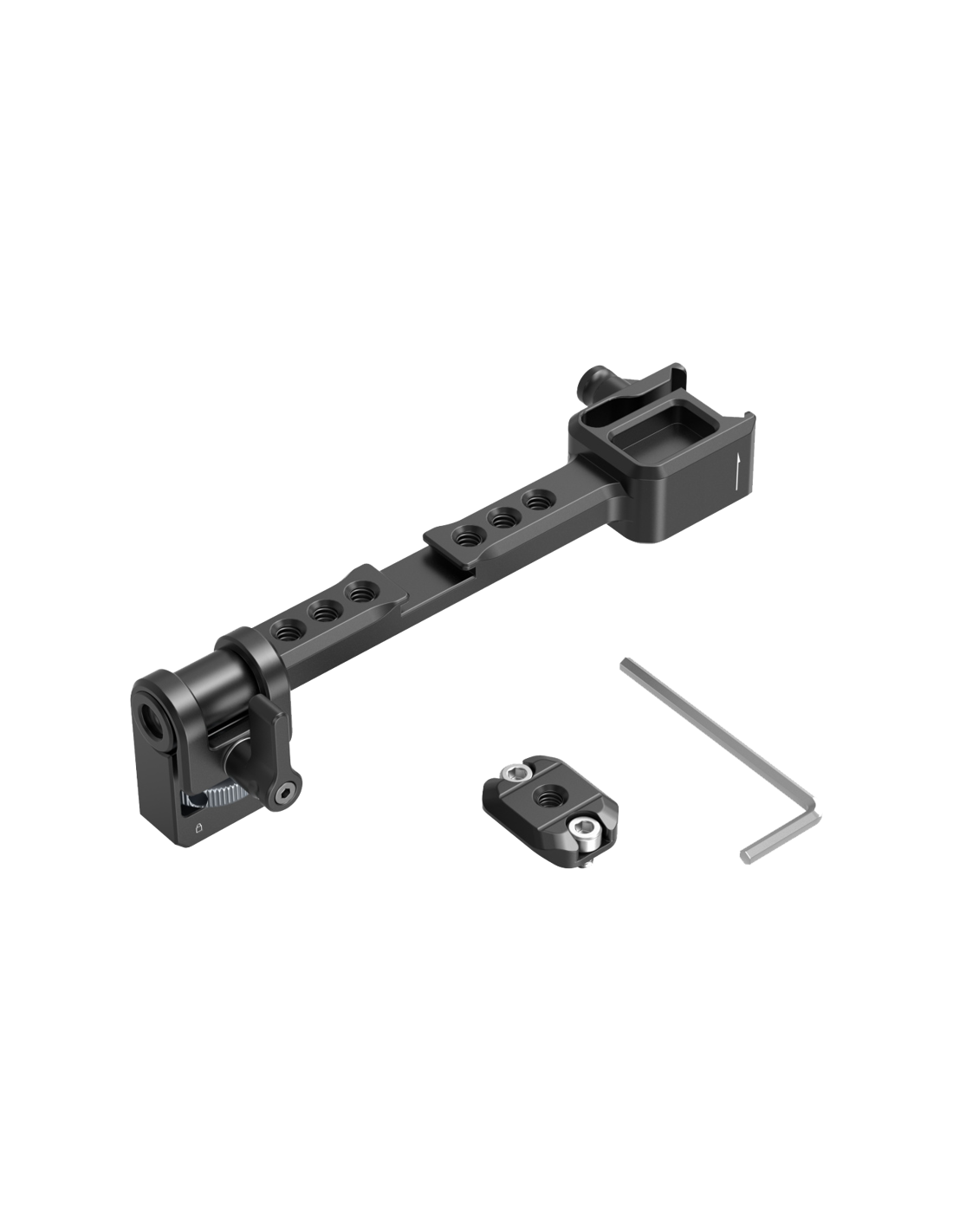 SmallRig 5337 Monitor Mount til DJI RS Series.Med en belastningskapacitet på op til 1,5 kg er det velegnet til ca. 5-tommers skærme og giver mulighed for trinløs 360° rotation med en sikker låseknap.Derudover har beslaget seks 1/4"-20-gevindhuller og et koldt skobeslag til fastgørelse af mikrofoner, magiske arme og andet tilbehør.En dedikeret NATO-skinne er også inkluderet for at beskytte enhedens porte mod slitage.Kompatibilitet:DJI RS 2 / RSC 2 / RS 3 / RS 3 Pro / RS 3 Mini / RS 4 Mini StabilisatorerEmballagen indeholder:MonitormonteringNATO-skinneM4-skrueUnbrakonøgle