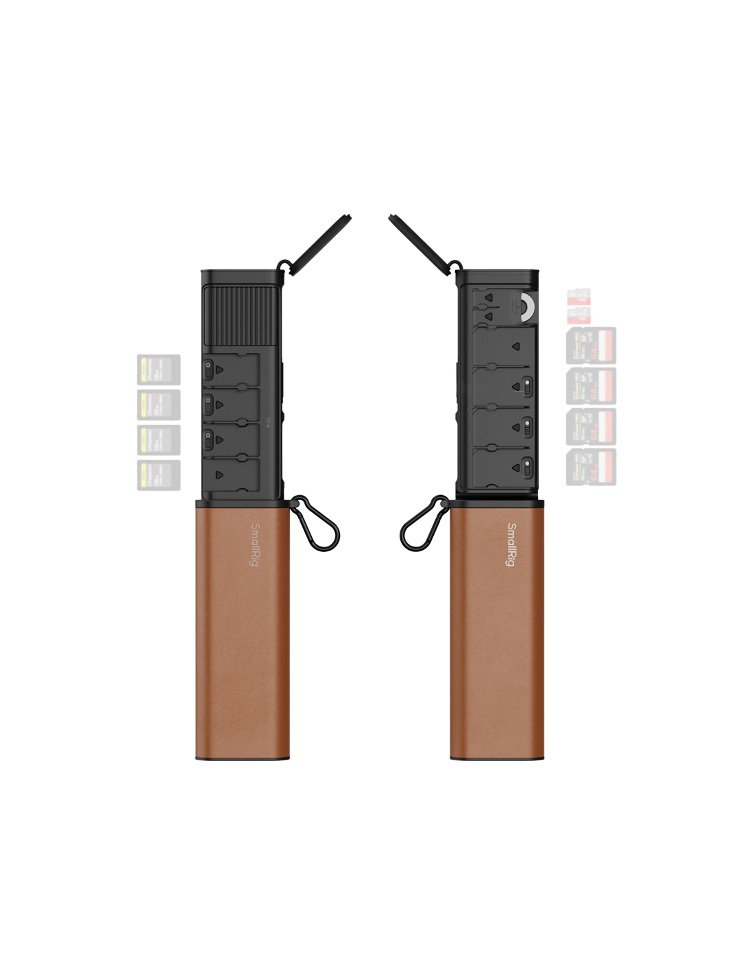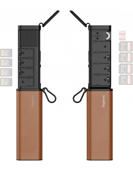 SmallRig 5361 Multifunctional Card Reader & Storage Case CFexpress Type A Udstyret med en indbygget USB 3.2 Gen 2-chip leverer den hastigheder på op til 10 Gbps (1250 MB/s), mens kølepladen i aluminium og den ekstra USB-C-strømforsyningsport sikrer stabil ydeevne.   Den dedikerede AirTag-slot giver mulighed for mere sikker håndtering af hukommelseskort.Etuiet kan opbevare op til 10 kort:   4x SD, 2x Micro SD (TF) og 4x CFexpress Type A. Hver plads har en silikonepude til sikker opbevaring og en drejetast til at markere kortstatus (tom/fuld).  Dertil kommer en karabinhage til forbedret bærbarhed og en flad skruenøgle til nødafmontering.  Kompatibilitet:USB: 3.2 Gen2 (10Gbps / 1250MB/s), bagudkompatibel med 3.1 / 3.0 / 2.0SD-kort: UHS-II (SD / SDXC / SDHC, op til 312 MB/s), UHS-I-kompatibelMicro SD: UHS-II (Micro SD / SDXC / SDHC, op til 312 MB/s), UHS-I-kompatibelPakken indeholder:Multifunktionel kortlæser  Karabinhage  Flatnøgle